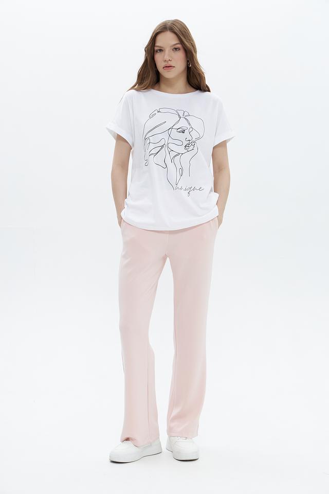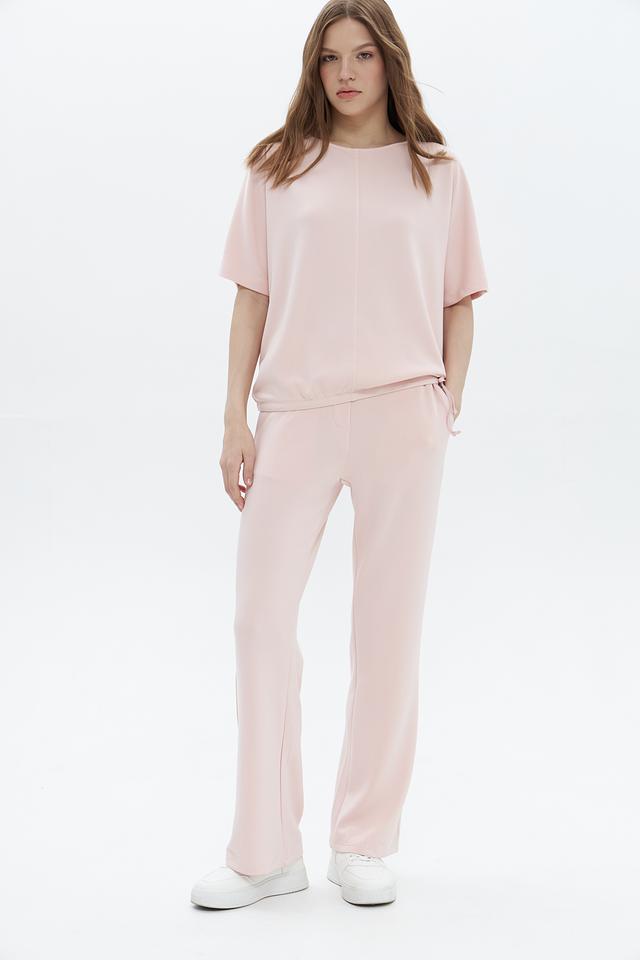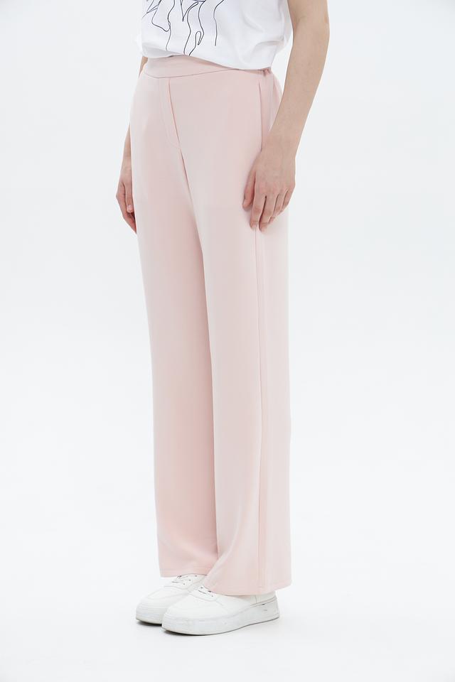 Брюки имеют прямой крой, который обеспечивает комфортную посадку и свободу движений. Эластичный пояс с кулиской гарантирует идеальную посадку по фигуре. Декоративная вытачка спереди добавляет изысканности и подчеркивает силуэт.