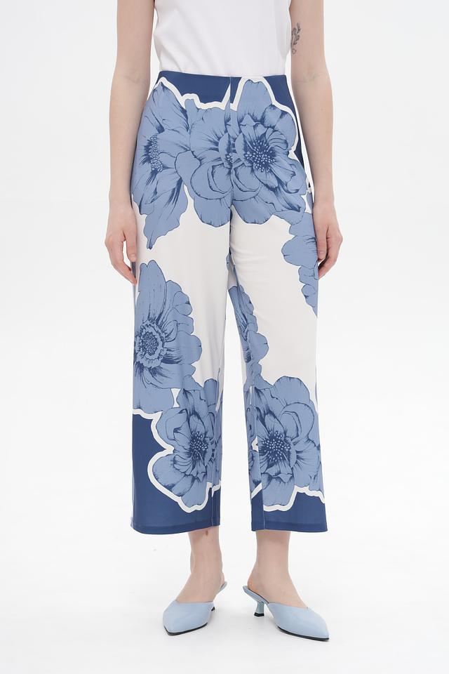 Женские брюки клёш от бренда Oui станут ярким акцентом вашего образа. Модель выполнена в светлых тонах с крупным цветочным принтом, создающим эффектный и запоминающийся вид.