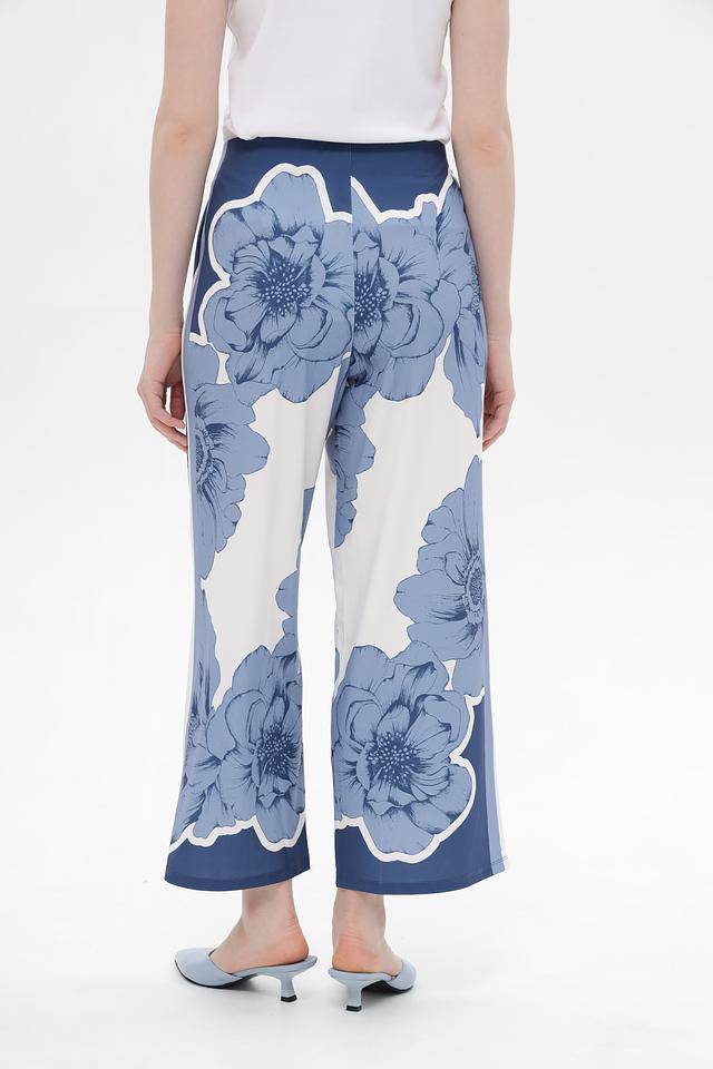 Брюки имеют клёш от бедра, обеспечивая свободу движений и комфорт при носке. Высокая посадка подчеркивает талию и визуально удлиняет ноги.