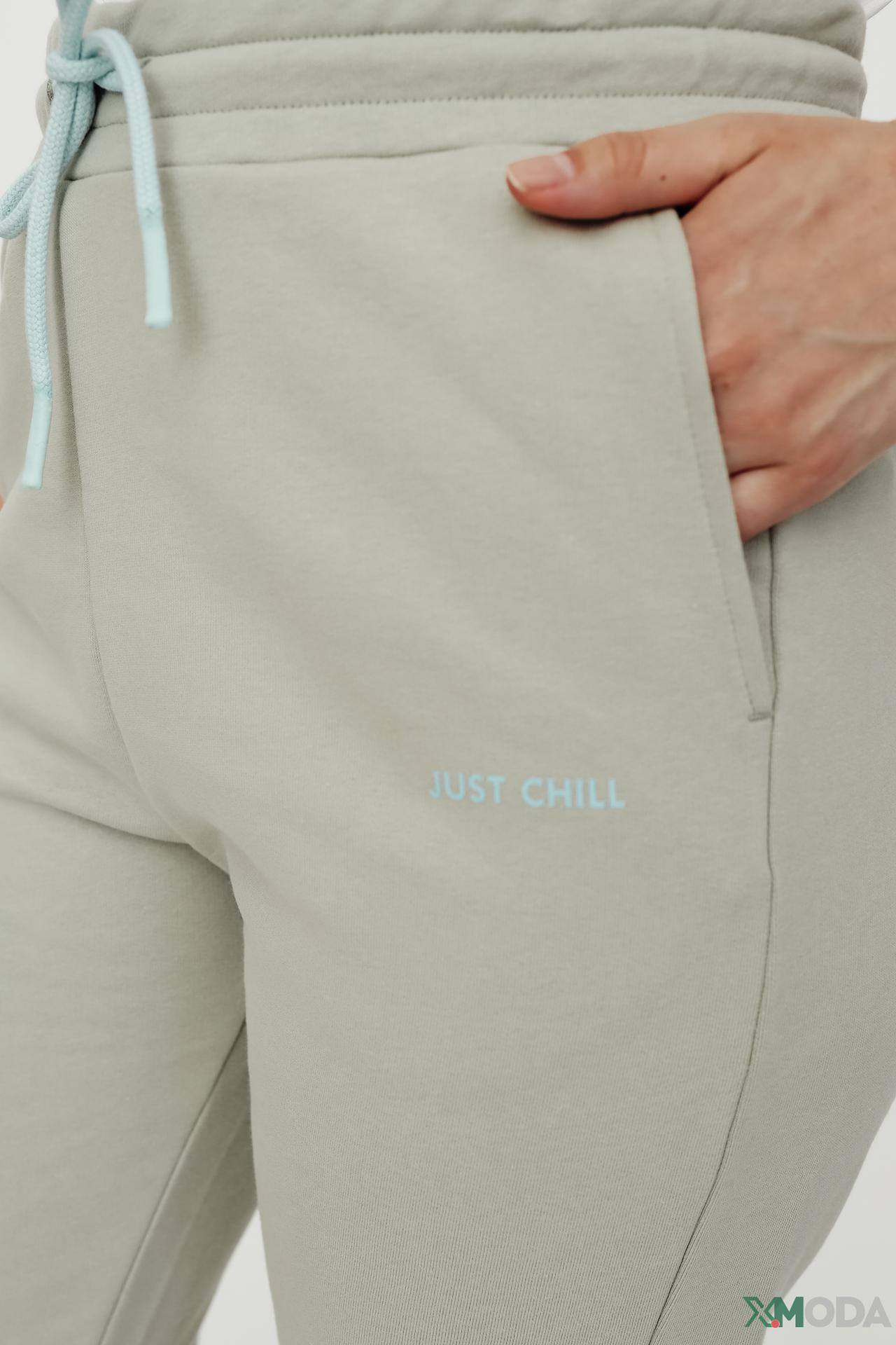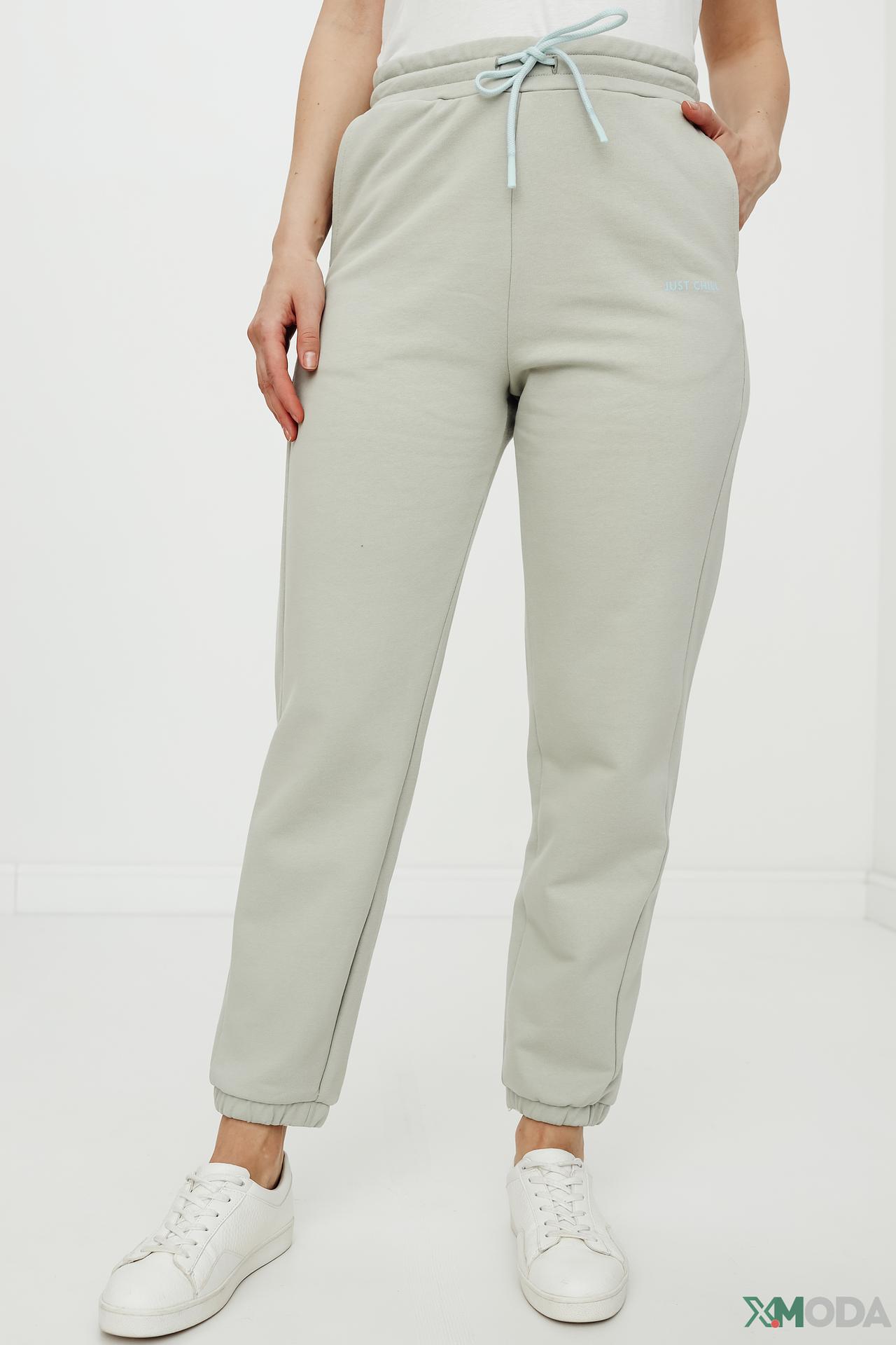 Брюки Oui спортивные, светло-зеленые, с надписью