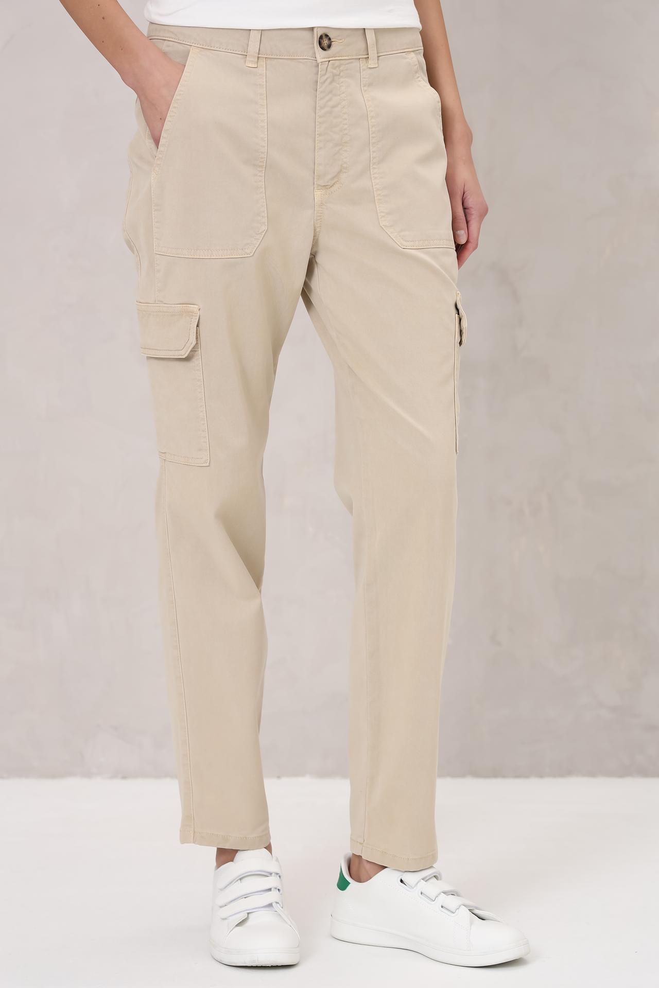 Брюки Oui женские, цвет бежевый, с карманами карго