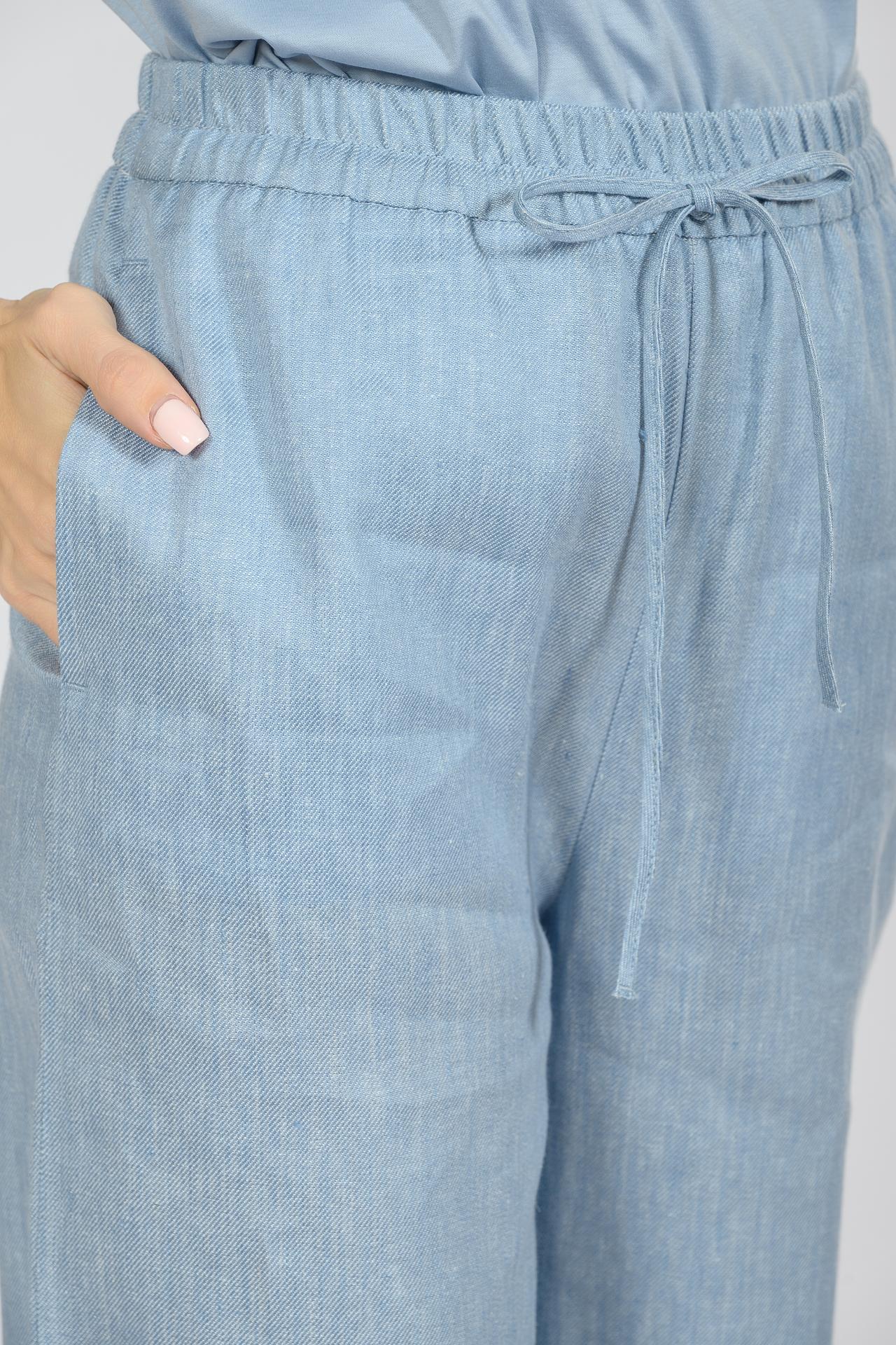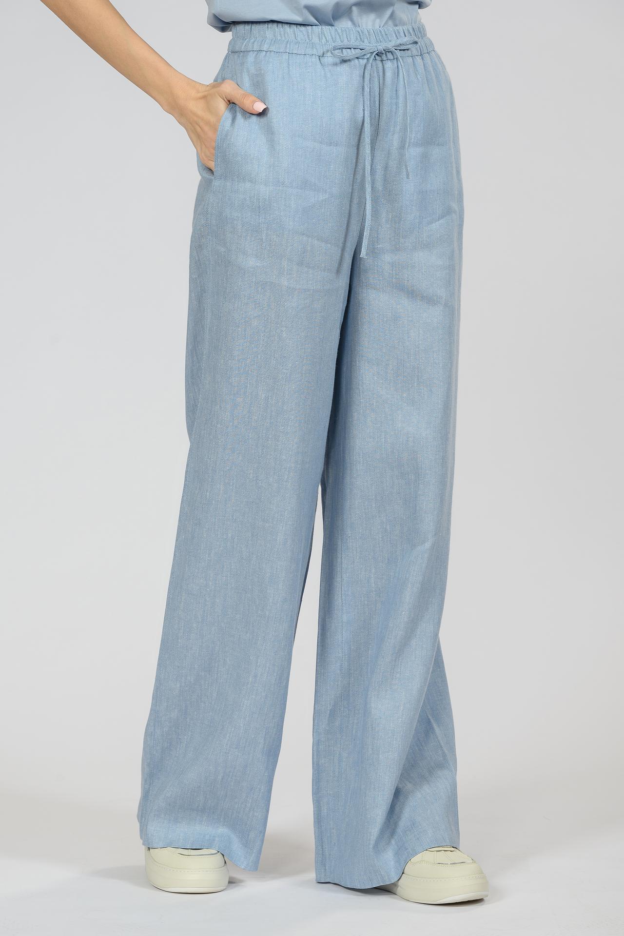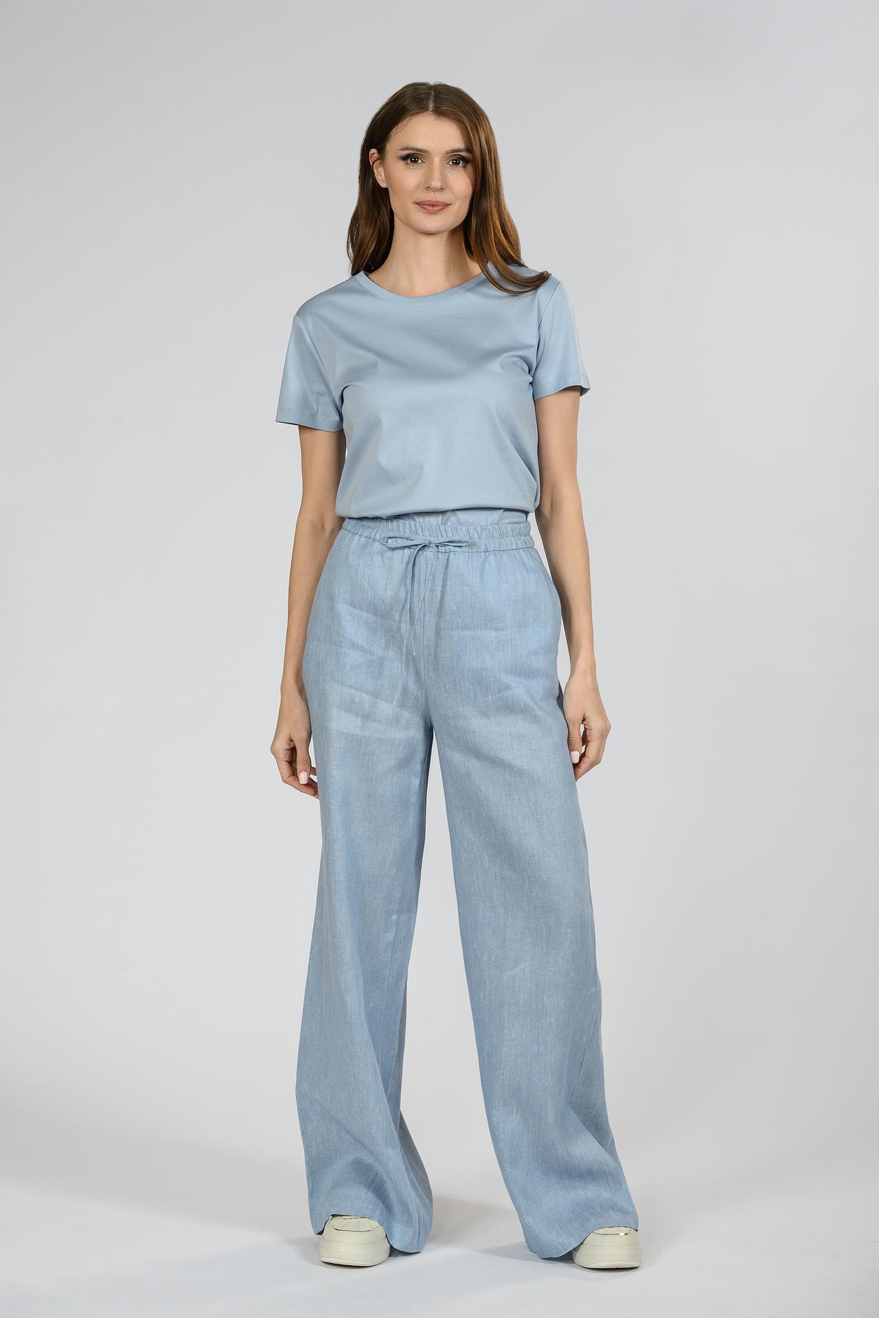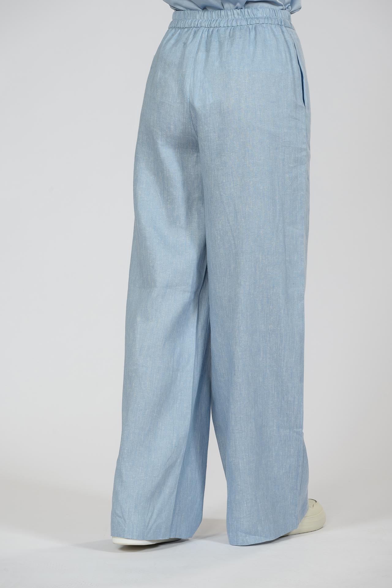 Брюки палаццо EMKA, голубые, лен и хлопок, на резинке