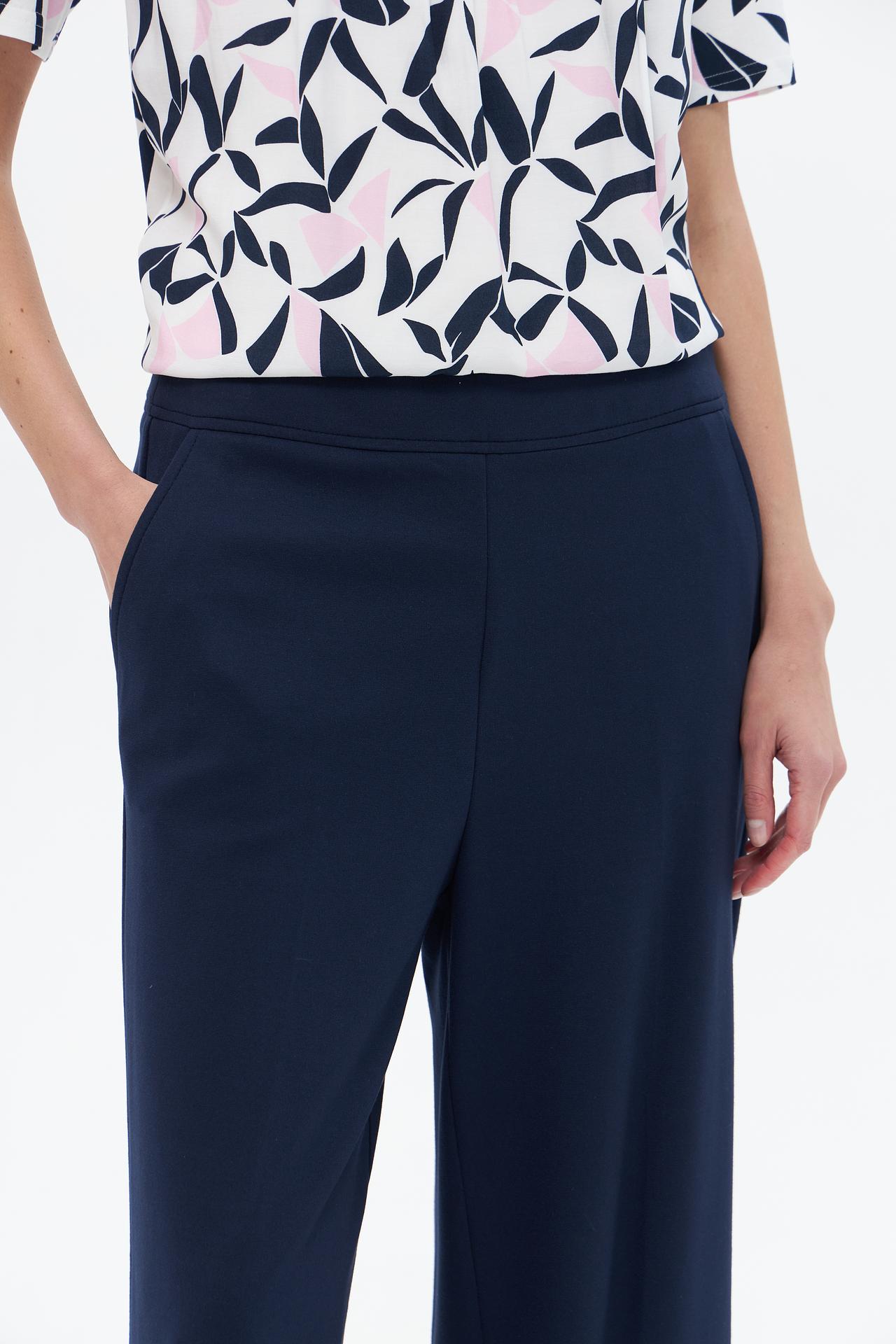 Благодаря своему составу, брюки отлично держат форму, приятны к телу и обеспечивают свободу движений. Классический крой и универсальный синий цвет позволяют легко сочетать их с различными элементами гардероба.