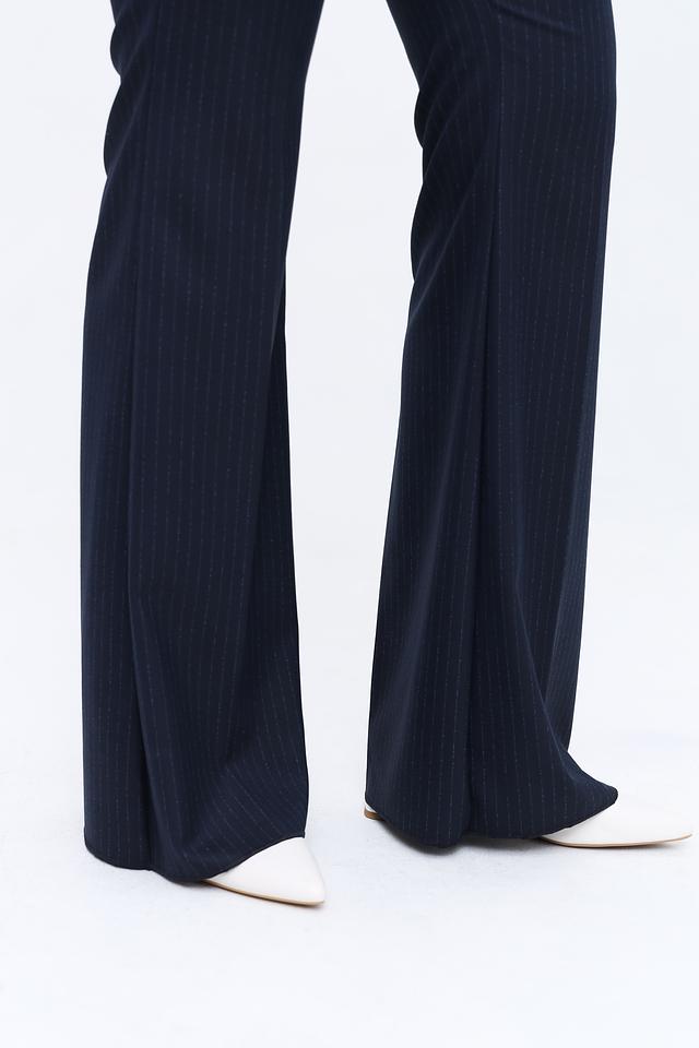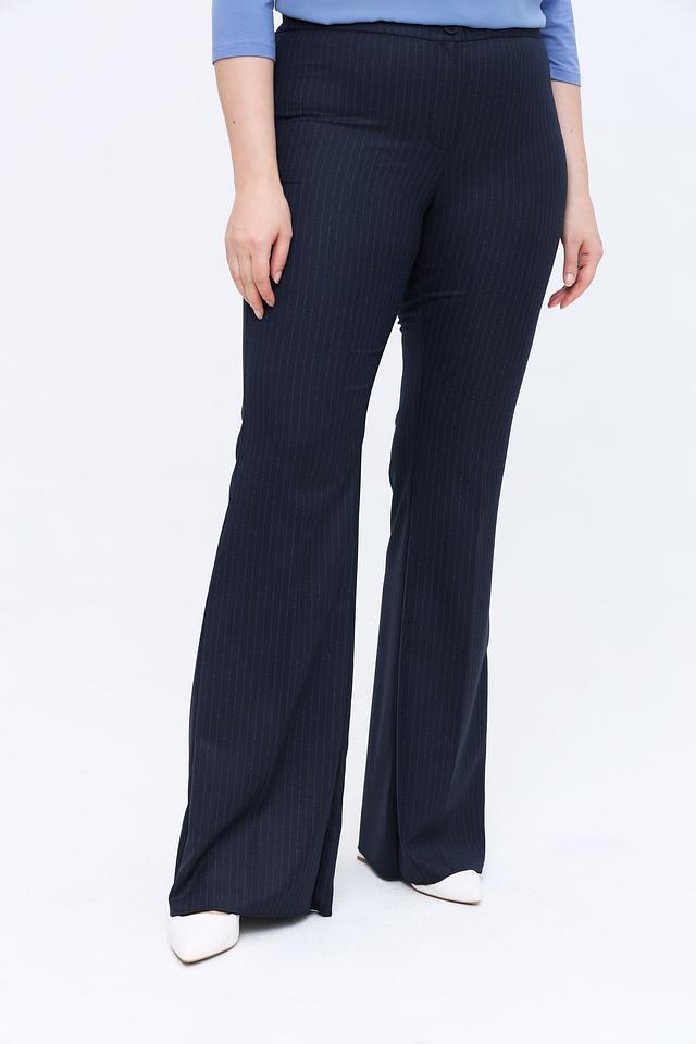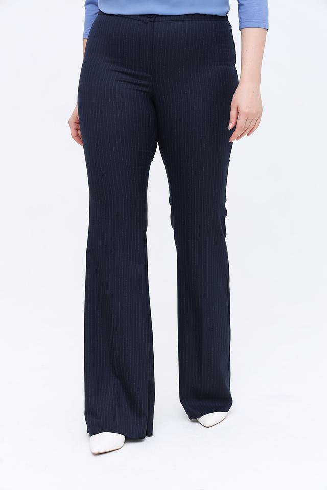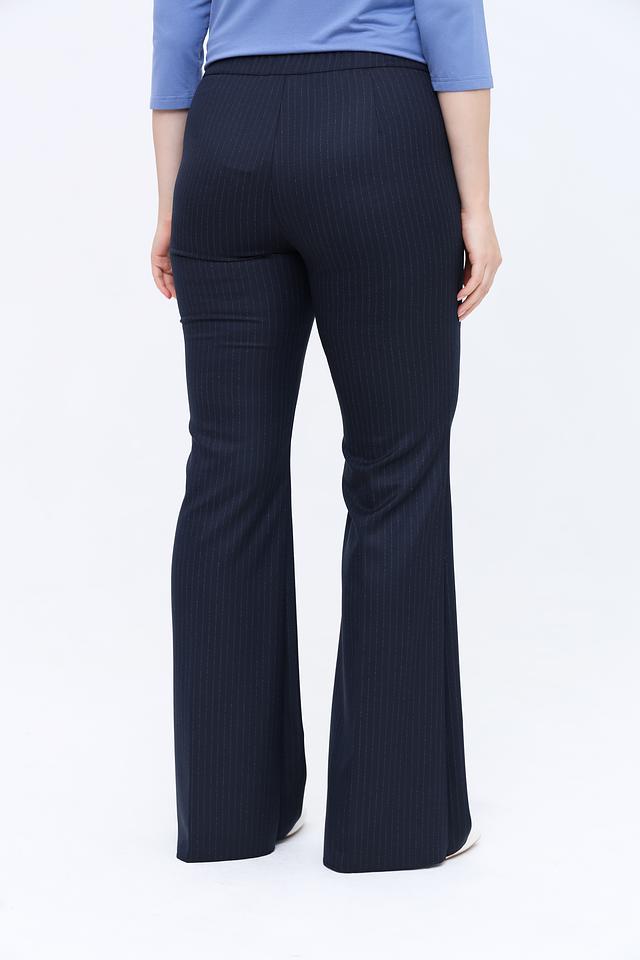 Брюки Persona N.O.W. тёмно-синего цвета с вертикальной полоской – элегантный выбор для создания делового или повседневного образа. Классический крой и слегка расклешенный силуэт визуально удлиняют ноги и обеспечивают комфортную посадку. Состав: полиэстер 63%, вискоза 34%, эластан 3%