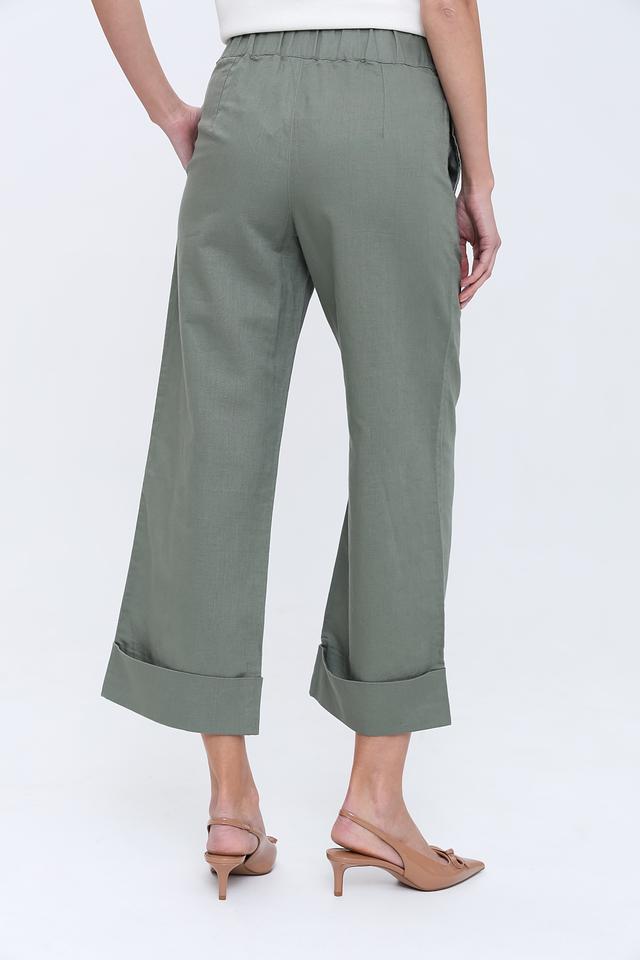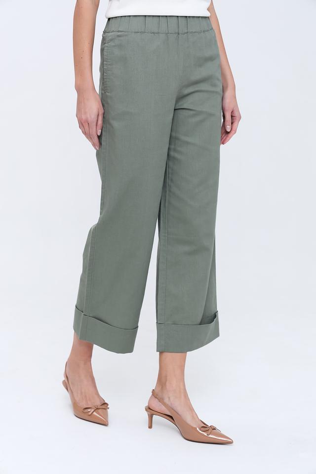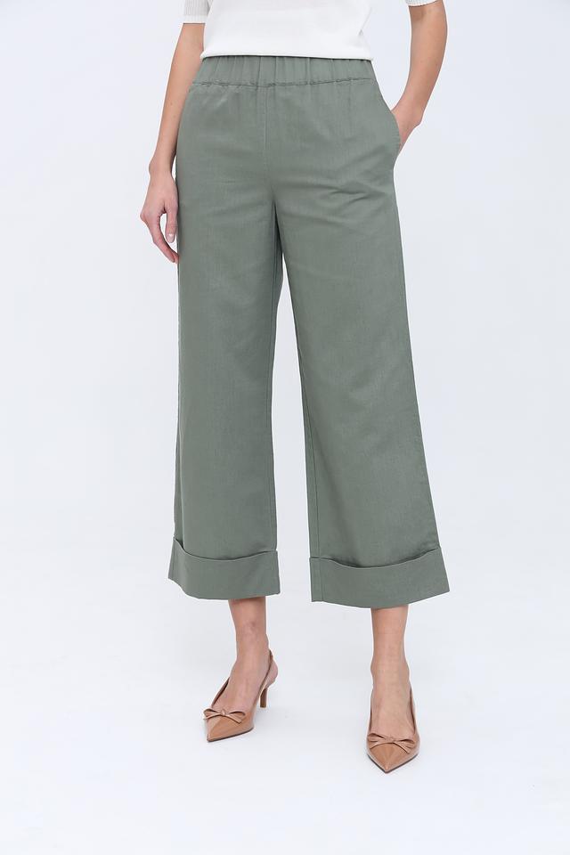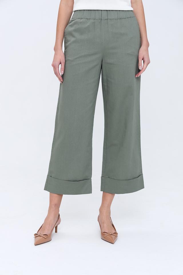 Женские брюки Pezzo цвета хаки — стильная модель кюлотов с эластичным поясом и удобным кроем. Брюки выполнены из натурального смесового материала, обеспечивающего комфорт в носке. Состав: лен 55%, хлопок 45%
