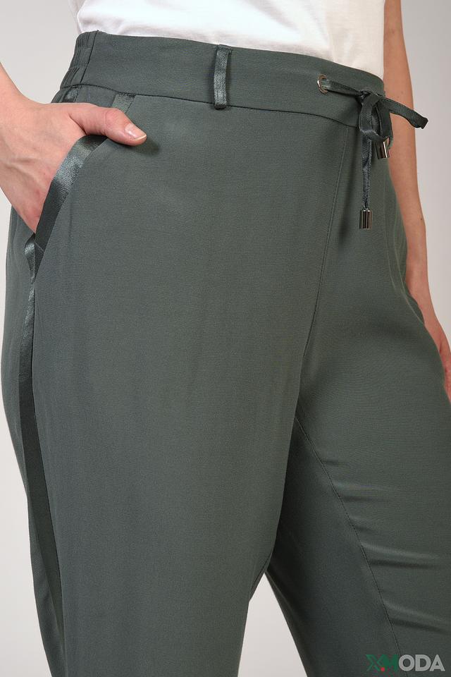 Женские брюки Pezzo цвета хаки – это стильное и комфортное решение для повседневного гардероба. Модель выполнена из мягкой ткани с добавлением вискозы, имеет удобный пояс на завязках и слегка зауженный силуэт. Состав: вискоза 58%, район 42%