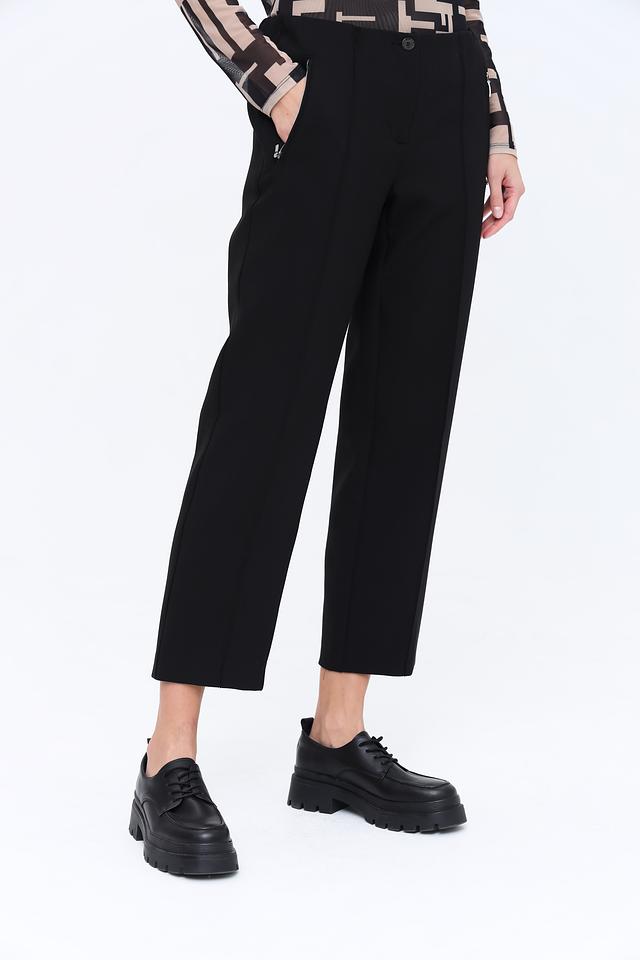 Благодаря своему лаконичному дизайну и универсальному черному цвету, эти брюки легко сочетаются с различными элементами одежды, позволяя создавать разнообразные образы — от деловых до повседневных. Состав ткани обеспечивает хорошую износостойкость и простоту в уходе.