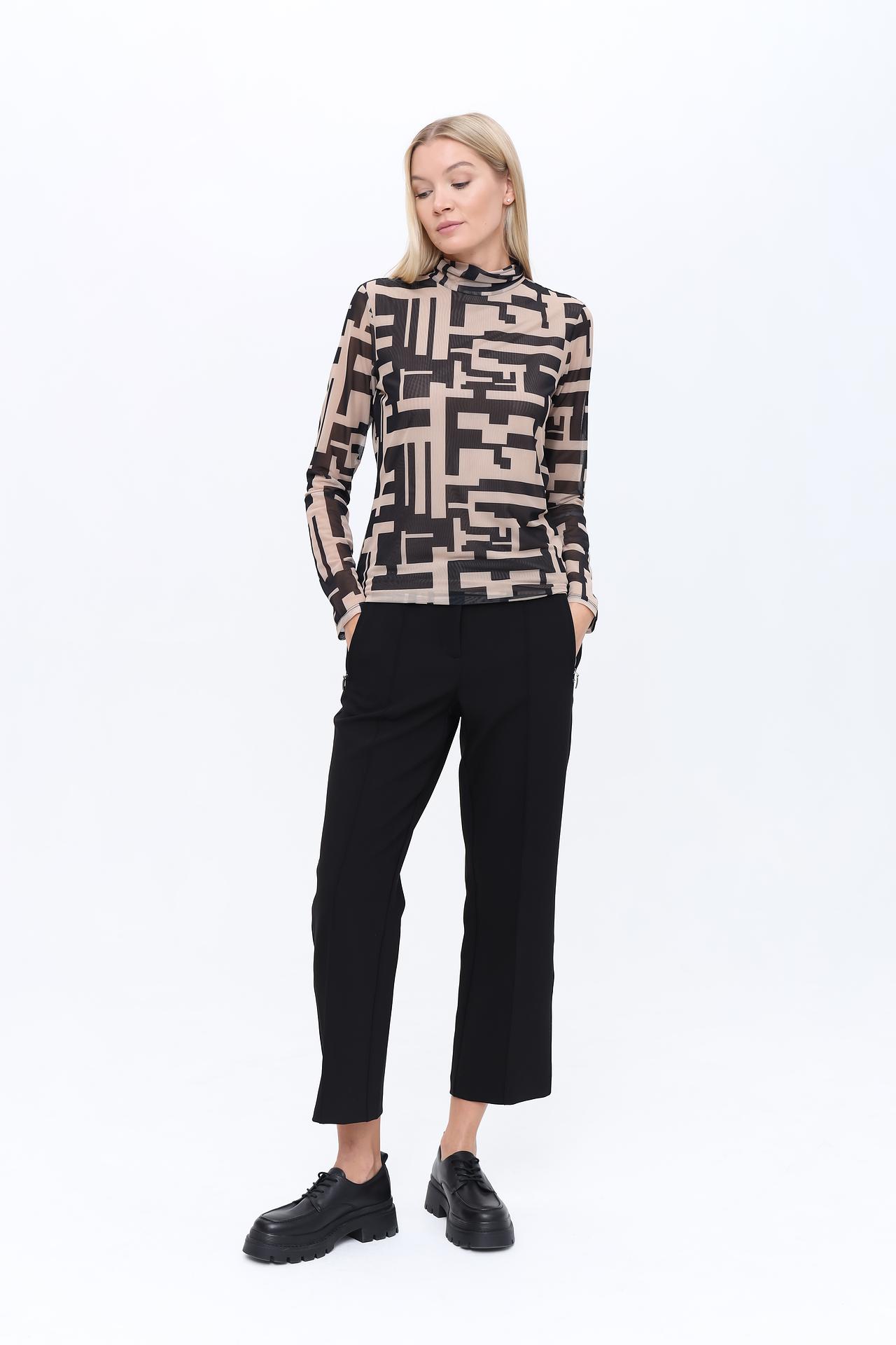 - Крой: Прямой крой и укороченная длина создают актуальный силуэт, визуально удлиняя ноги. Брюки прекрасно сочетаются с различной обувью, от элегантных лодочек до массивных ботинок.