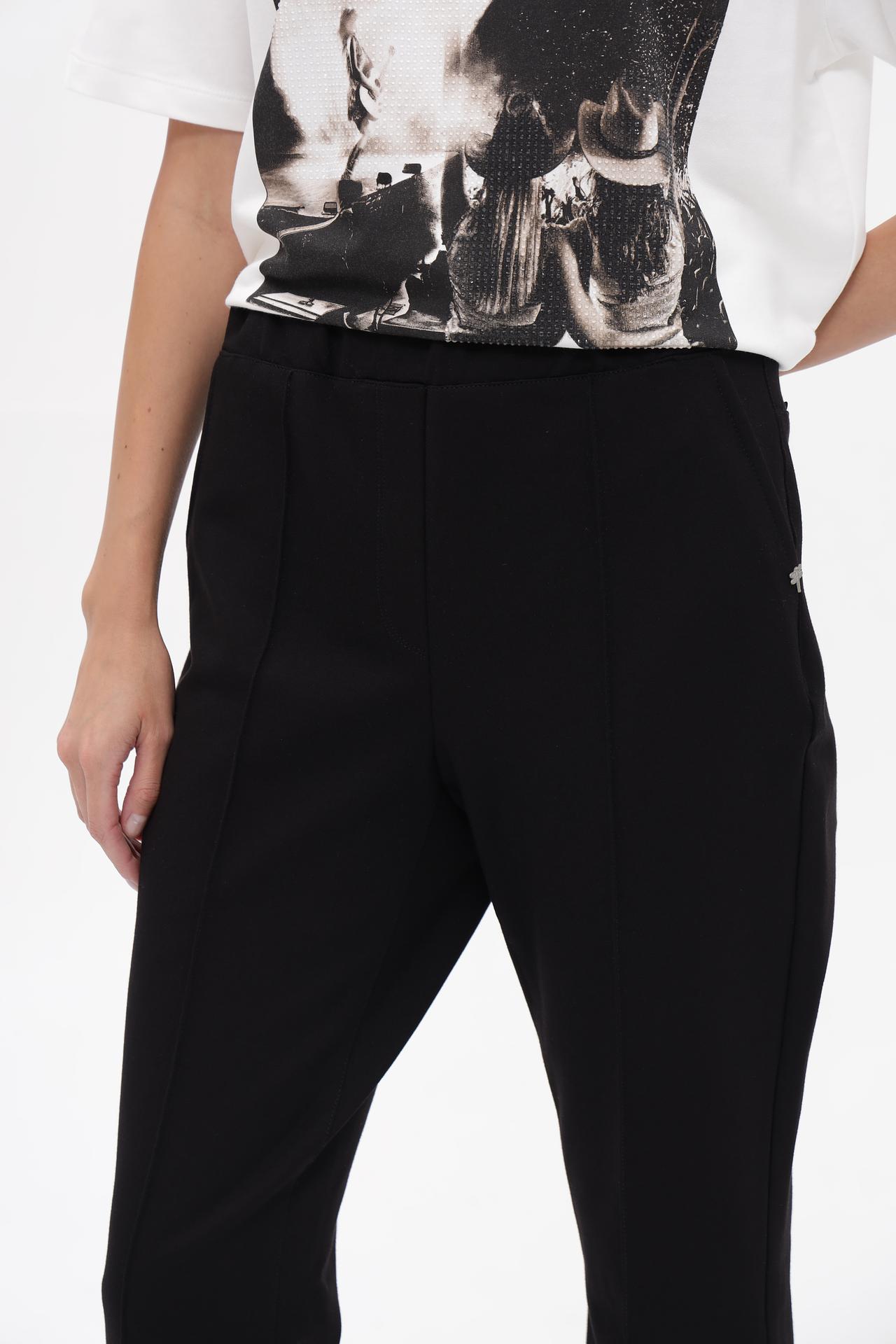 Модель выполнена из качественной смесовой ткани, обеспечивающей комфорт и идеальную посадку. Сочетание вискозы, полиамида и эластана гарантирует приятные тактильные ощущения, износостойкость и легкость в уходе. Эти брюки станут незаменимой частью вашего гардероба, сочетая в себе стиль и практичность.