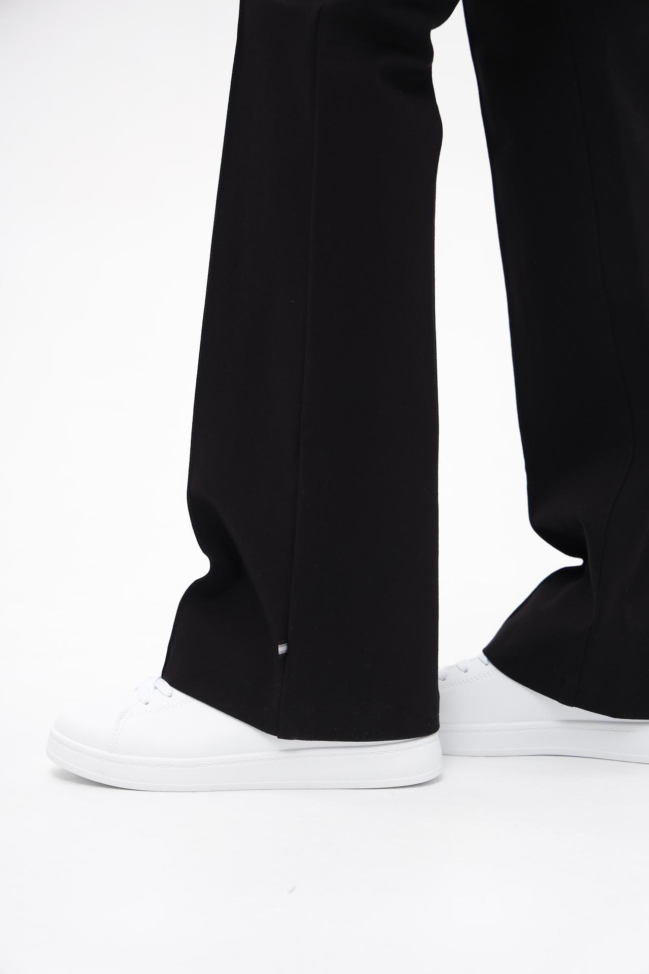 Элегантные брюки Ppep. – идеальный выбор для создания современного образа. Расклешенный крой выгодно подчеркивает фигуру, а классический черный цвет делает их универсальной основой для множества нарядов.