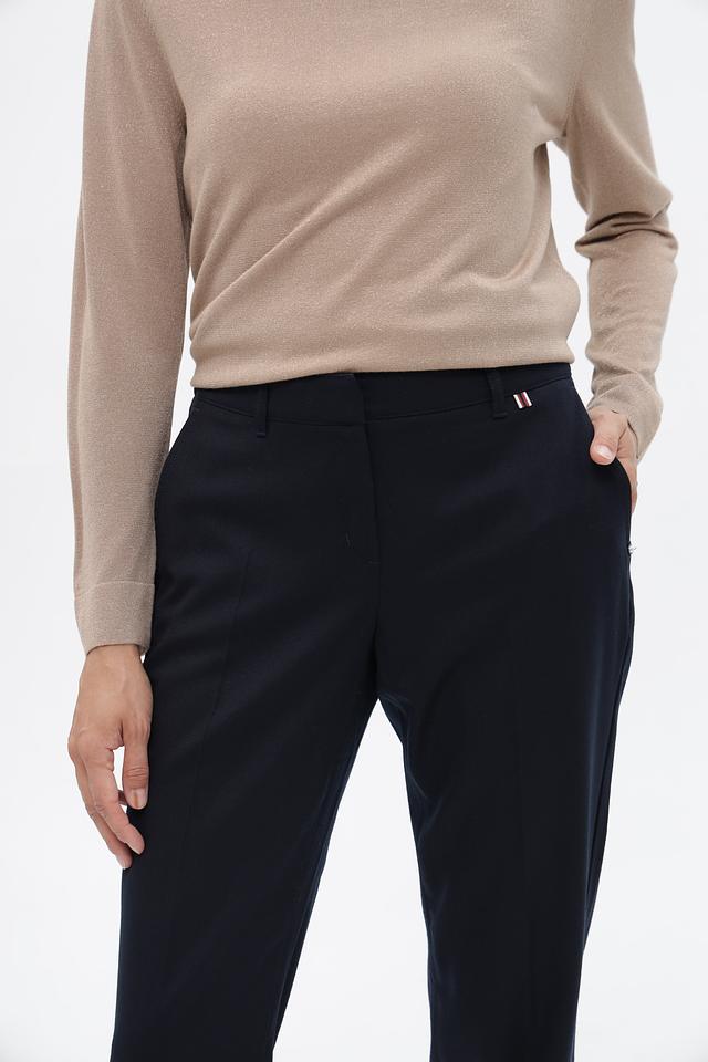 Классические брюки от бренда Ppep станут универсальным дополнением к вашему гардеробу. Модель выполнена в темно-синем цвете и изготовлена из высококачественной шерсти с добавлением эластана, обеспечивающего комфорт и свободу движений.