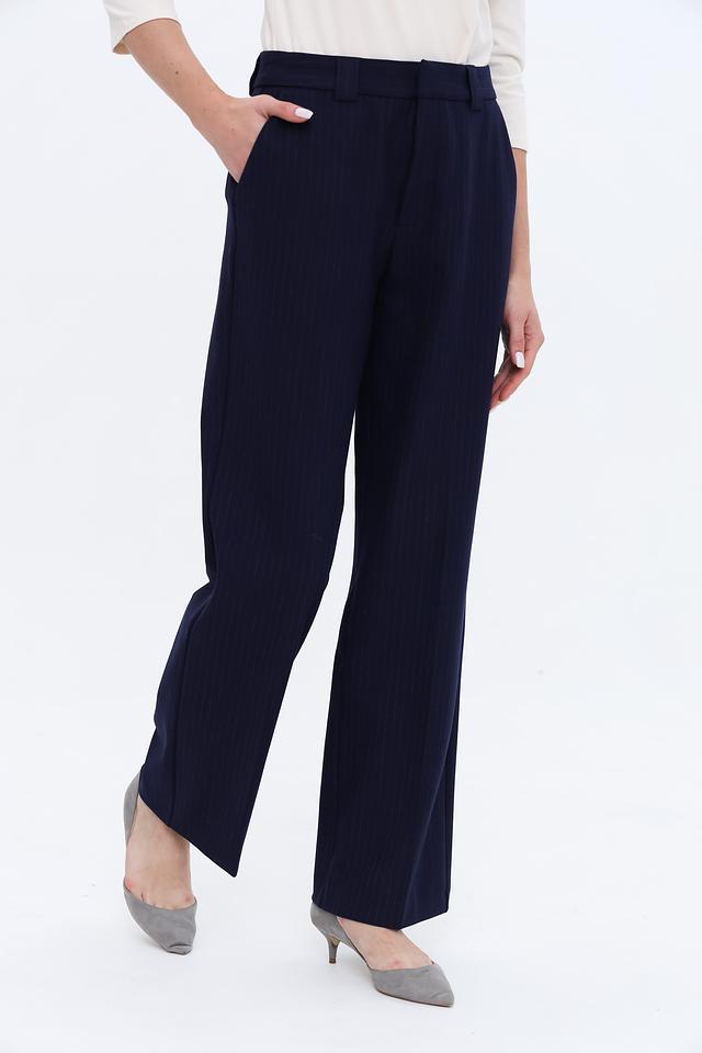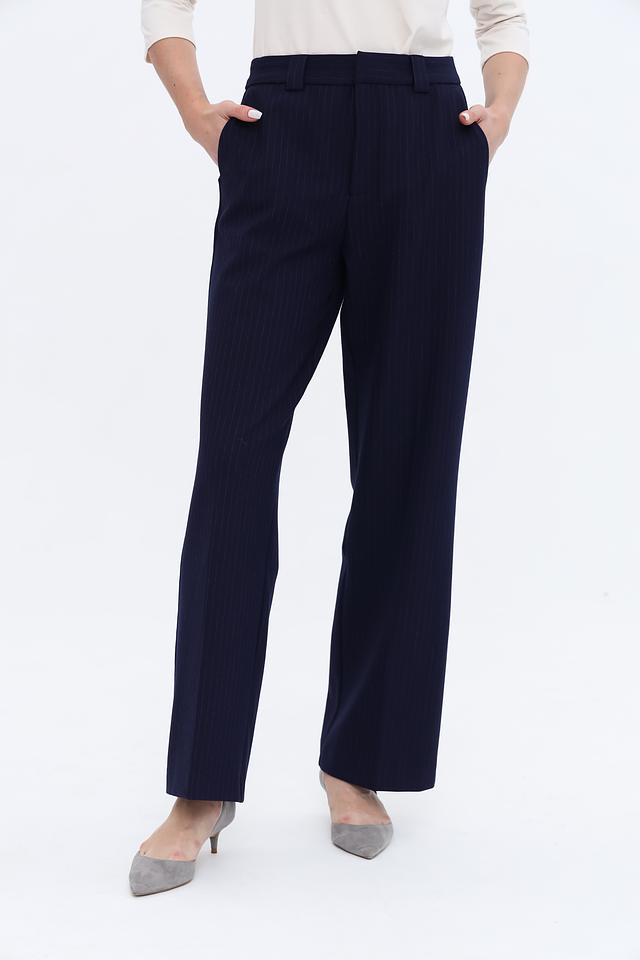 Темно-синие классические брюки от Rich and Royal с вертикальной полоской. Модель прямого кроя, с застежкой на молнию и пуговицу, имеет боковые карманы. Идеальный выбор для создания элегантного и стильного образа. Состав: полиэстер 68%, вискоза 29%, эластан 3%