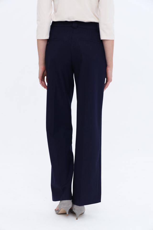 Представляем вашему вниманию классические брюки от бренда Rich and Royal. Эта модель выполнена в глубоком темно-синем цвете с деликатной вертикальной полоской, что придает ей особый шарм и элегантность.
