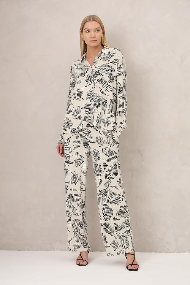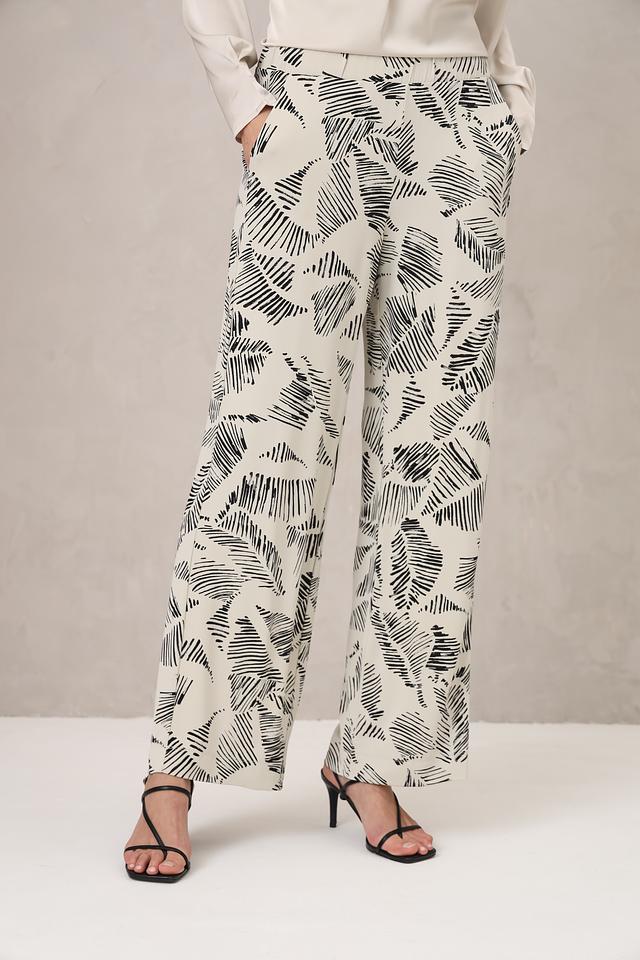 Принт в виде абстрактных листьев добавляет брюкам оригинальности и делает их запоминающимися. Брюки идеально подойдут для повседневной носки, а также для особых случаев. Сочетайте их с однотонными топами или блузками, чтобы создать гармоничный и стильный образ.