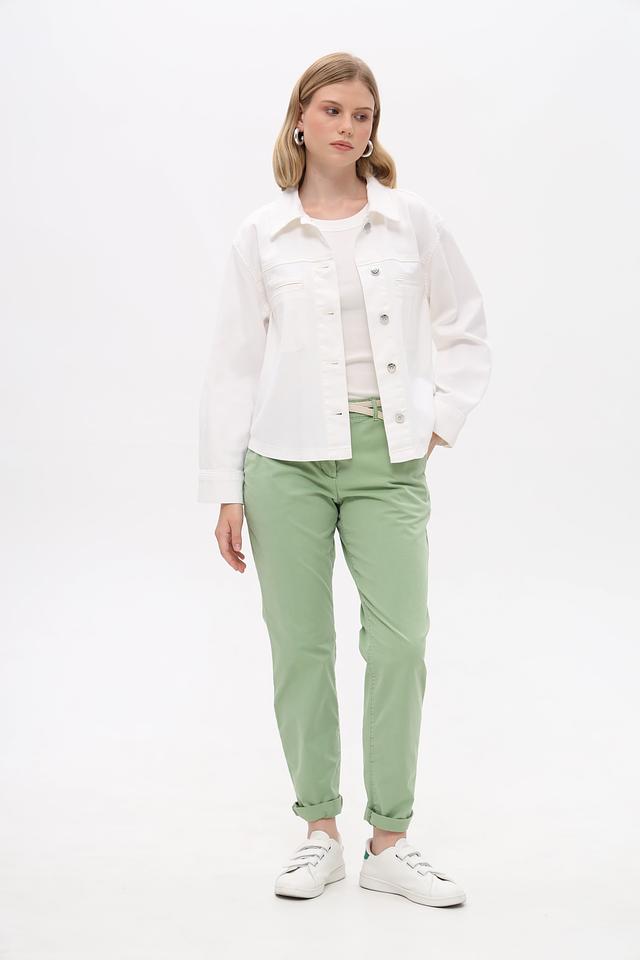 Женские брюки Tom Tailor мятного цвета, выполнены из хлопка с добавлением полиэстера и эластана. Удобная посадка и стильный дизайн для повседневного образа. Состав: хлопок 86%, полиэстер 10%, эластан 4%