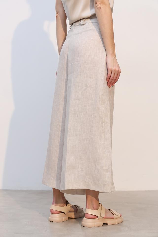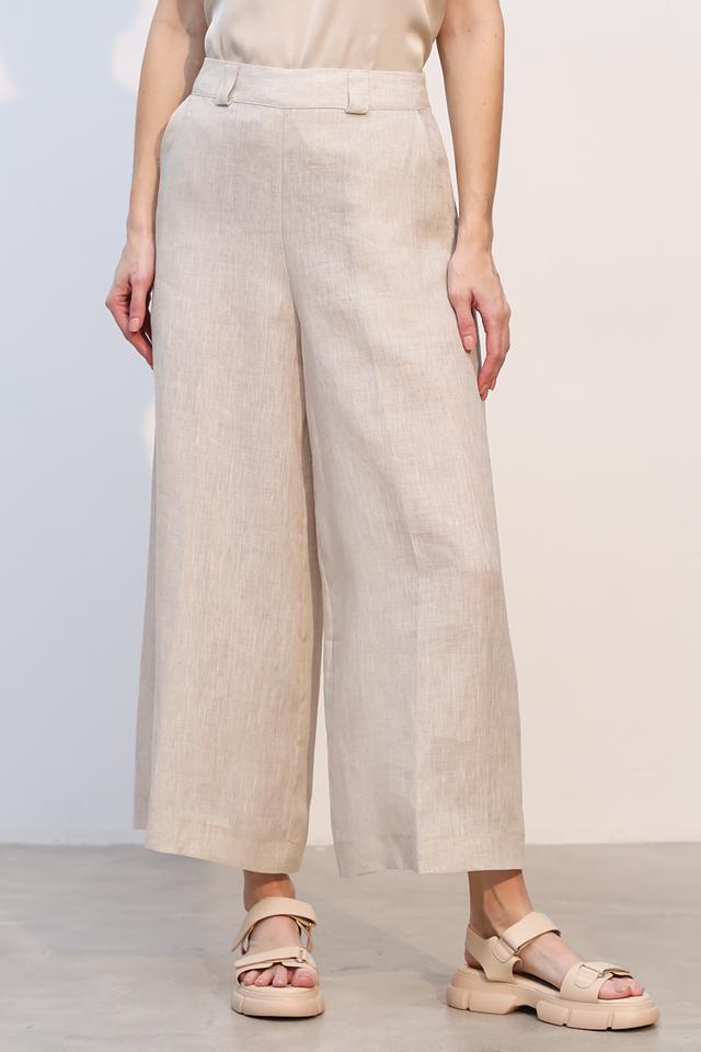 Брюки изготовлены из 100% льна, что делает их идеальным выбором для теплой погоды. Лен – это натуральный, дышащий материал, который обеспечивает приятные ощущения на коже и позволяет ей свободно дышать. Прямой крой брюк создает элегантный силуэт, а высокая посадка подчеркивает талию и визуально удлиняет ноги.
