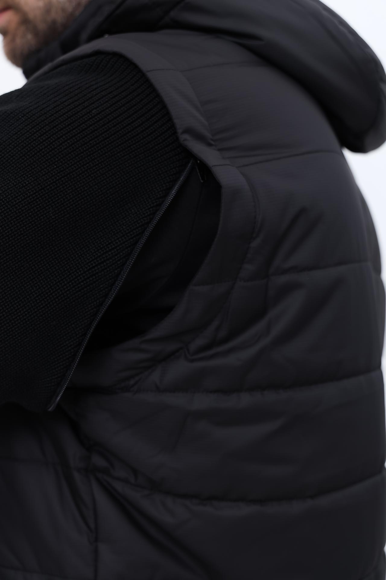 - Дизайн: Современный крой и минималистичный дизайн делают жилет универсальным элементом гардероба. Наличие капюшона добавляет функциональности и защищает от непогоды.