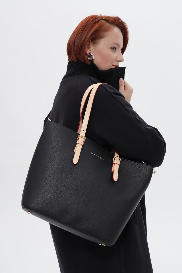 Стильная сумка Bugatti чёрного цвета с розовыми ручками станет отличным дополнением к вашему образу. Изготовлена из качественного полиуретана, практичная и удобная в использовании. Состав: полиуретан 100%
