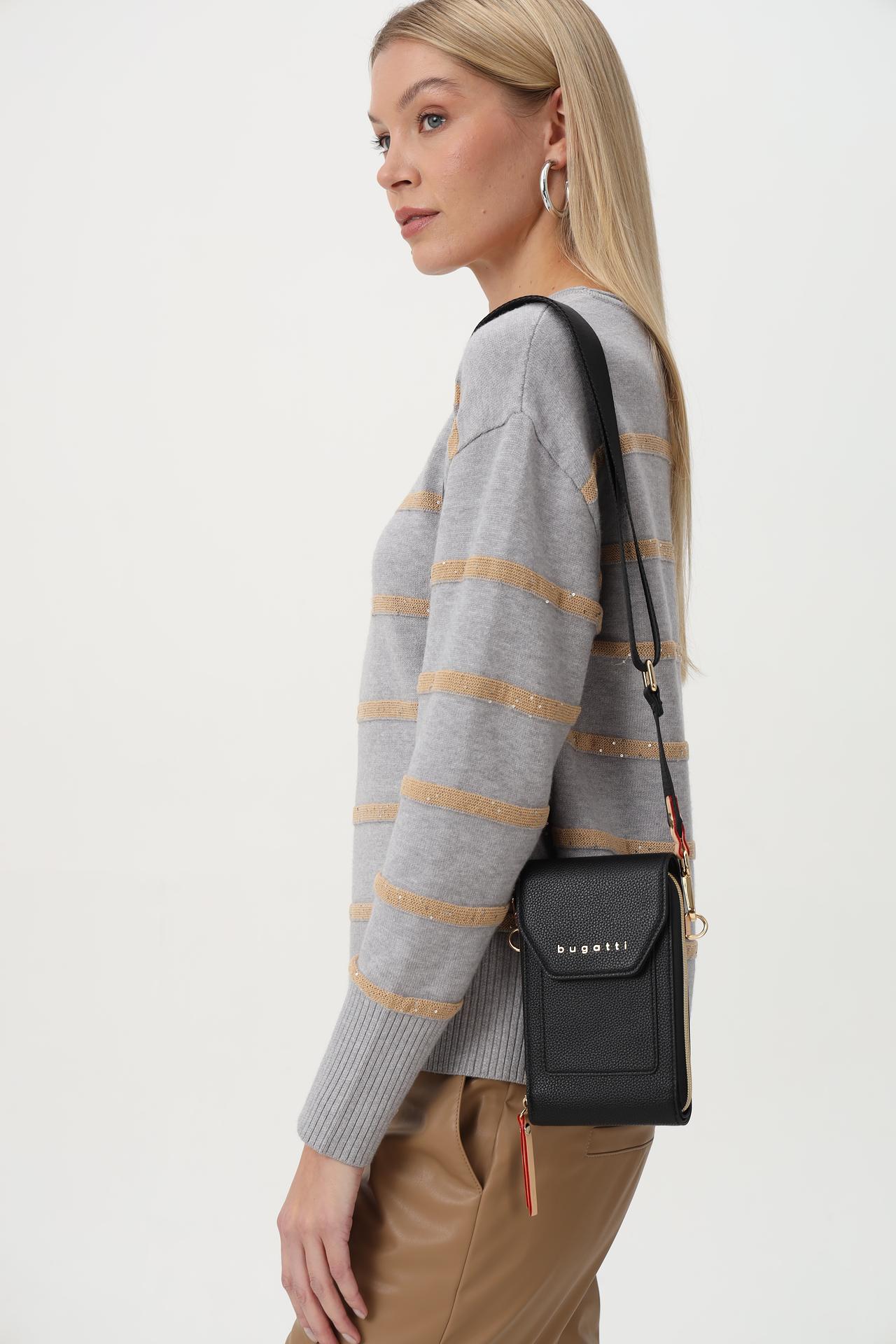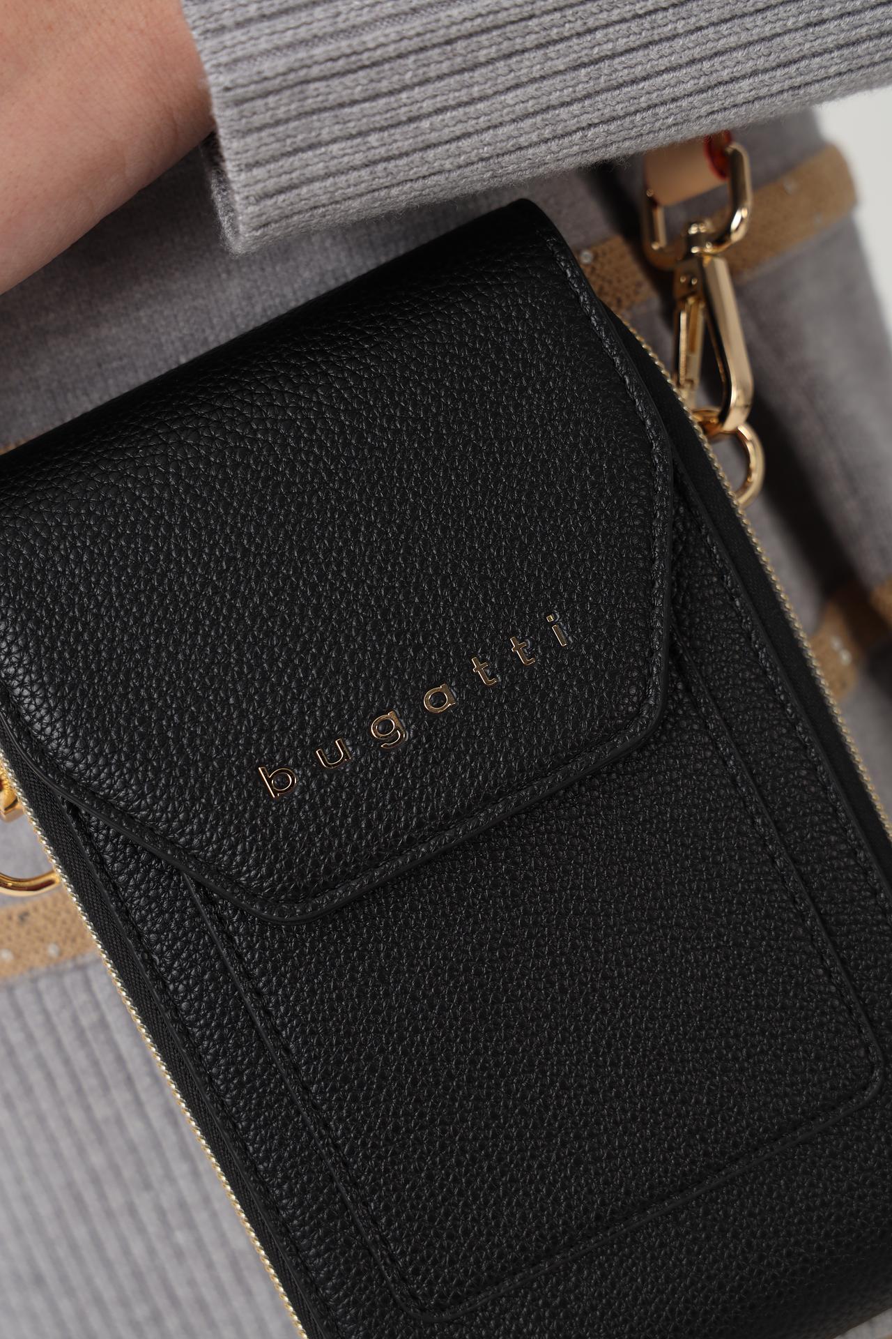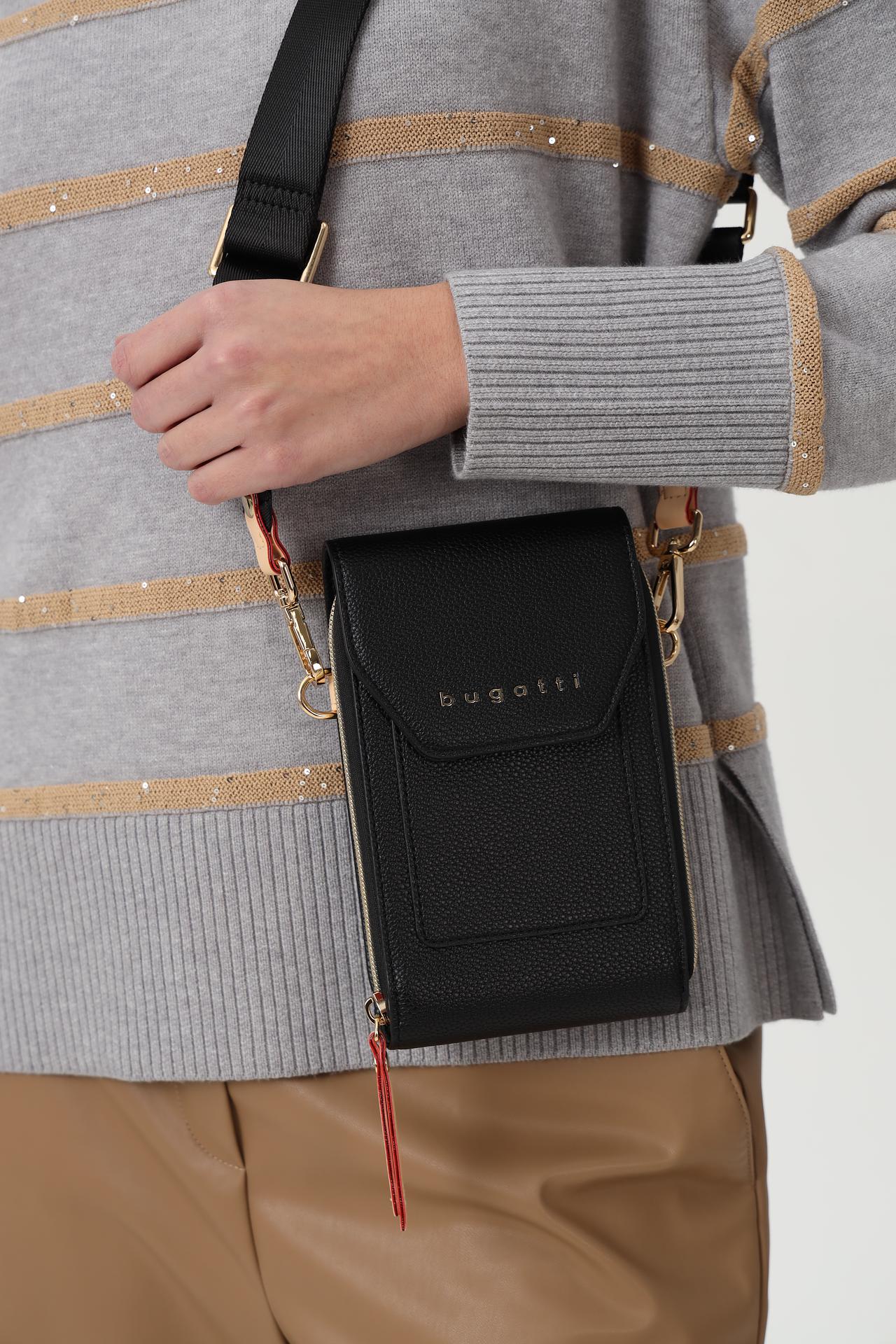 - Дизайн: Классический черный цвет и минималистичный дизайн делают эту сумку универсальной, подходящей к любому наряду. Логотип бренда Bugatti деликатно украшает переднюю часть.