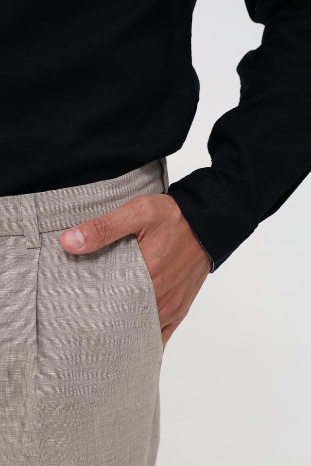Брюки оснащены эластичным поясом с завязками, что обеспечивает комфортную и надежную фиксацию. Ткань состоит из хлопка, льна и небольшого процента эластана, что придает брюкам мягкость, воздухопроницаемость и небольшую эластичность.