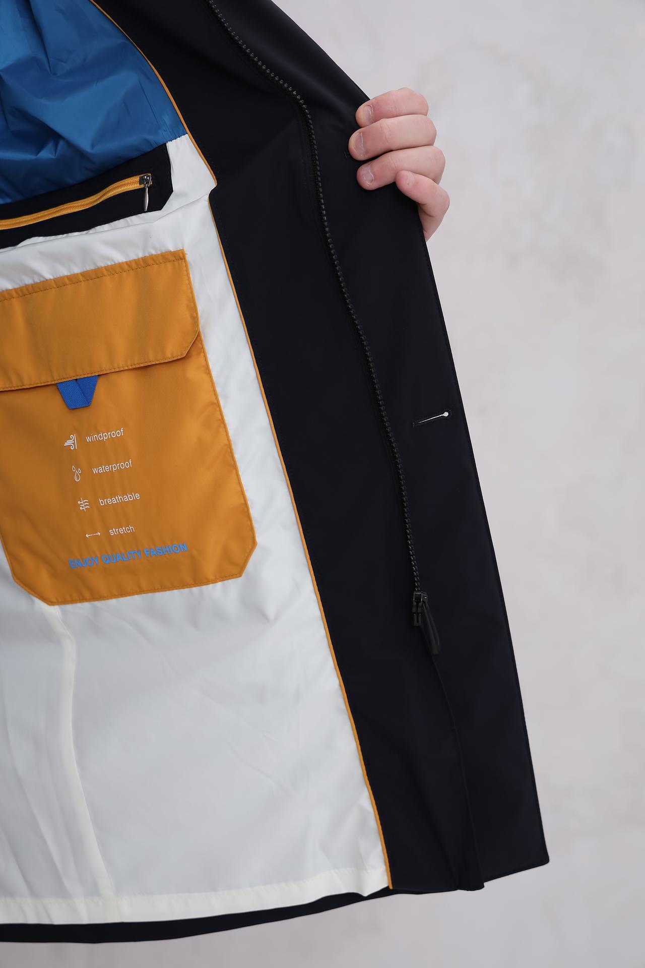 - Современный дизайн: Классический крой и тёмно-синий цвет делают этот плащ универсальным и стильным.