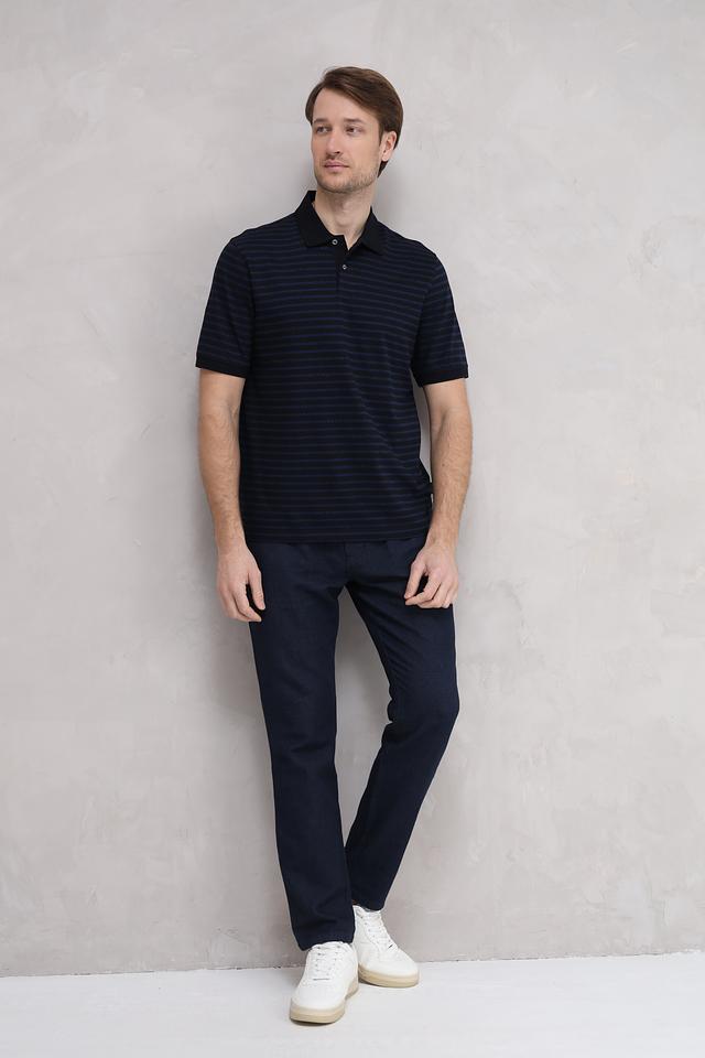 Это мужское поло от Bugatti выполнено в тёмно-синем цвете и украшено вертикальными полосами. Классический крой и короткие рукава делают его идеальным выбором для тёплой погоды.