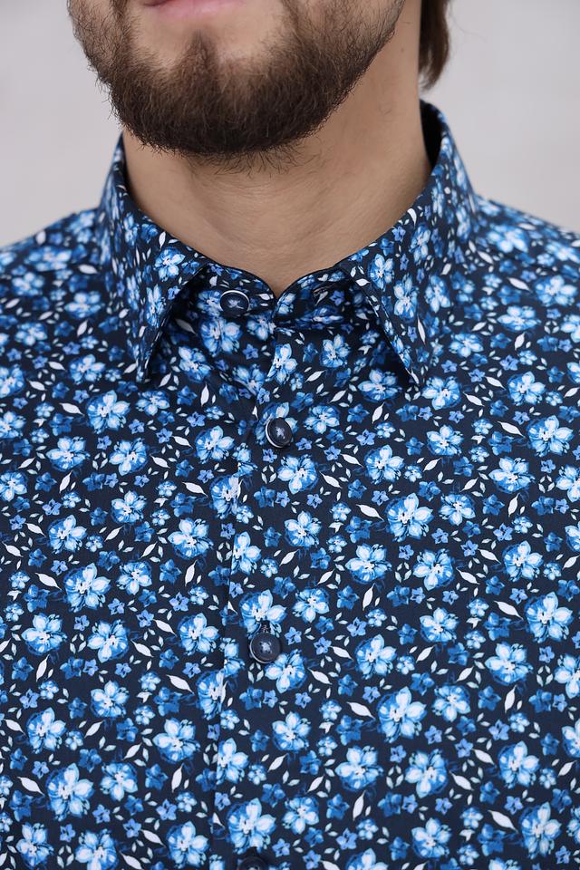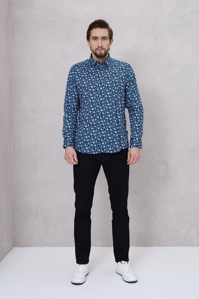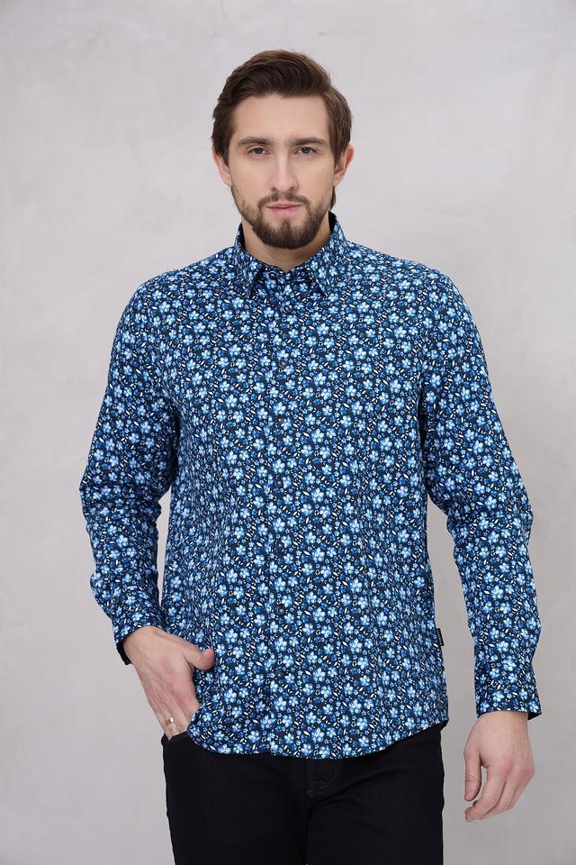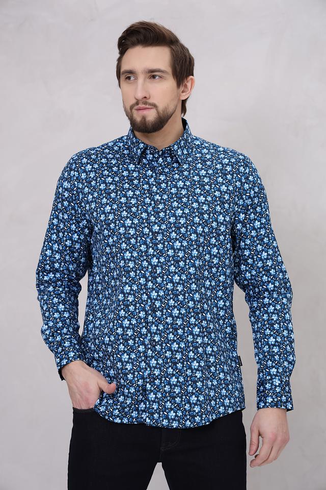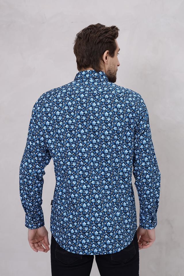 Мужская рубашка Bugatti синего цвета с ярким цветочным принтом. Изготовлена из 100% хлопка, обеспечивающего комфорт и воздухопроницаемость. Идеальный выбор для создания стильного и непринужденного образа. Состав: хлопок 100%