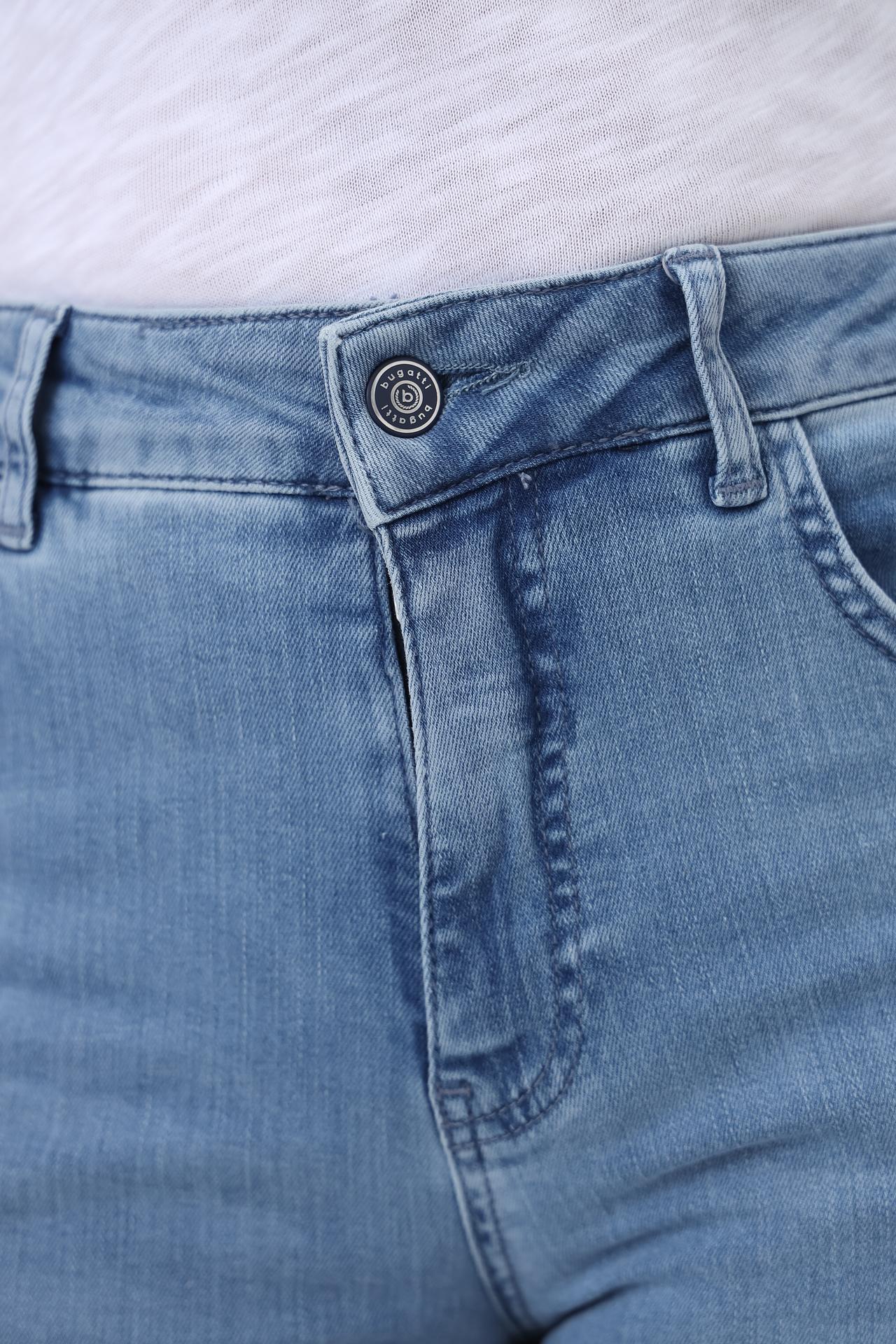 Эти прямые джинсы Bugatti станут прекрасным дополнением к вашему гардеробу. Выполненные из качественной ткани, состоящей из 77% хлопка, 21% полиэстера и 2% эластана, они обеспечивают комфорт и свободу движений. Голубой цвет денима придает им свежий и современный вид, а необработанный край штанин добавляет нотку небрежной элегантности. Классический дизайн с пятью карманами делает их практичными и удобными для повседневной носки.