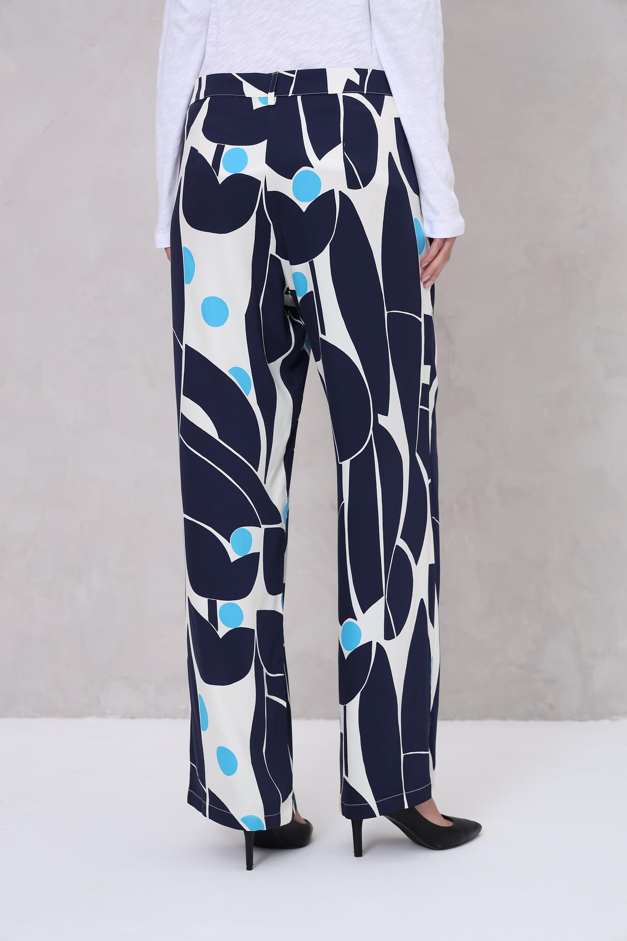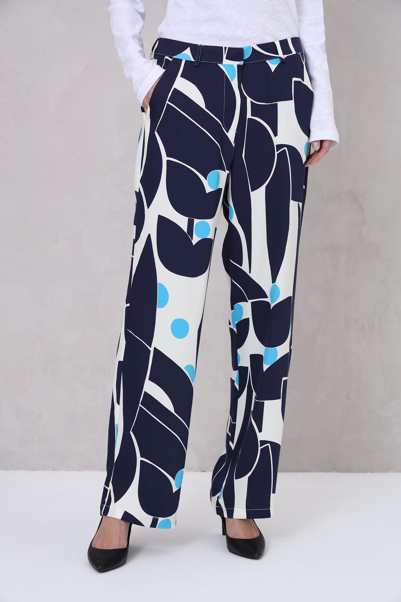 - Дизайн: Оригинальный геометрический принт делает эти брюки запоминающимися и стильными.