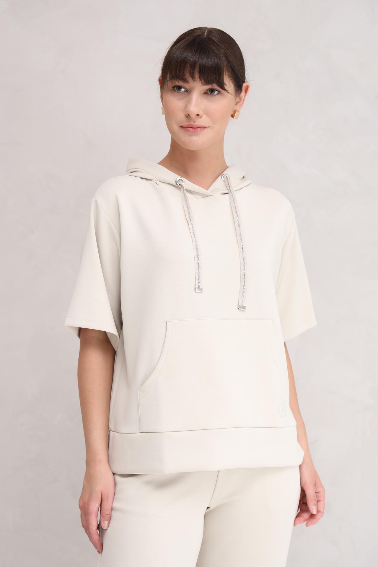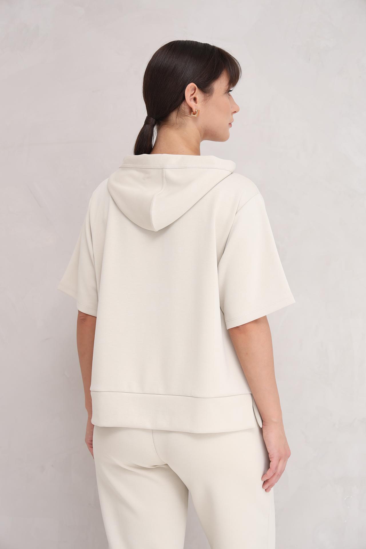 Сочетание модала, полиэстера и эластана гарантирует отличную посадку по фигуре, сохранение формы и долговечность. Благодаря короткому рукаву, эта модель подойдет для теплой погоды или для ношения в помещении. Этот худи станет отличным дополнением к вашему повседневному гардеробу.