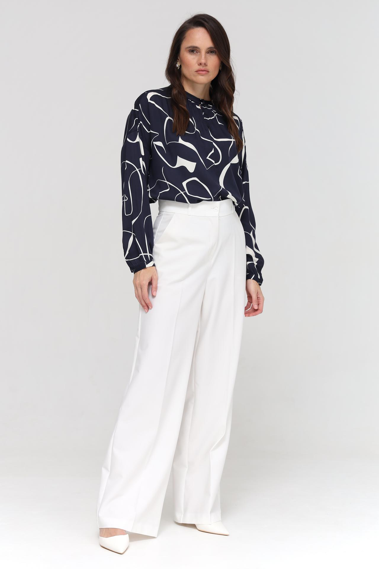 - Дизайн: Абстрактный принт добавляет оригинальности и делает блузу запоминающейся.