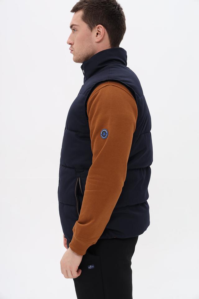 Стильный мужской жилет Bugatti синего цвета с актуальной стеганой фактурой. Модель выполнена из полиэстера с добавлением вискозы и эластана, что обеспечивает комфорт и удобство в носке. Отличный выбор для создания многослойных образов. Состав: полиэстер 69%, вискоза 29%, эластан 2%
