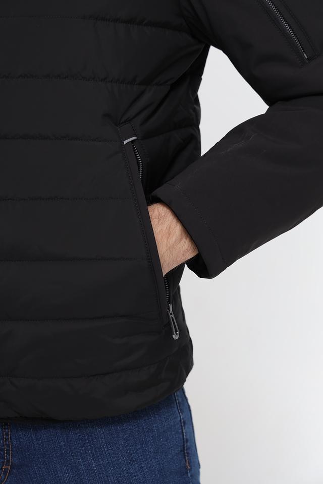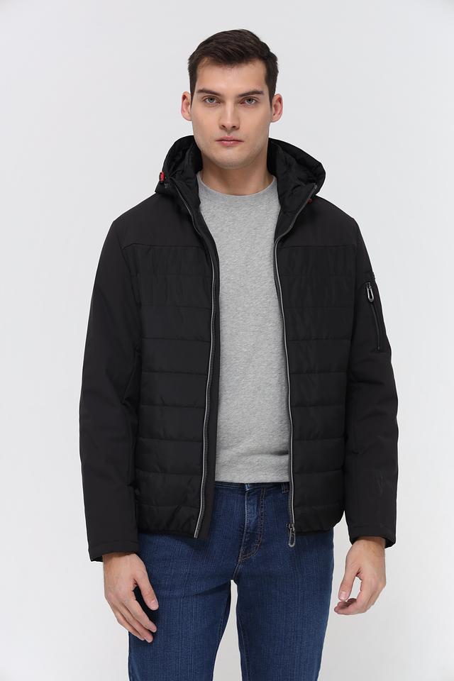 Чёрная куртка Bugatti из 100% полиэстера – стильное и практичное решение для прохладной погоды. Модель с капюшоном и стеганой фактурой обеспечит комфорт и защиту от ветра. Состав: полиэстер 100%