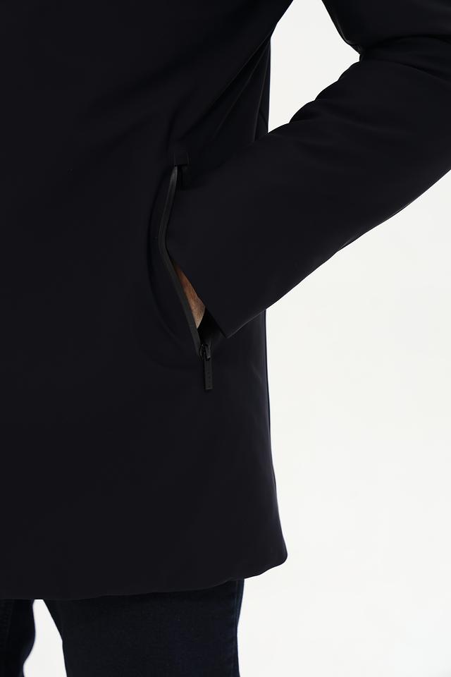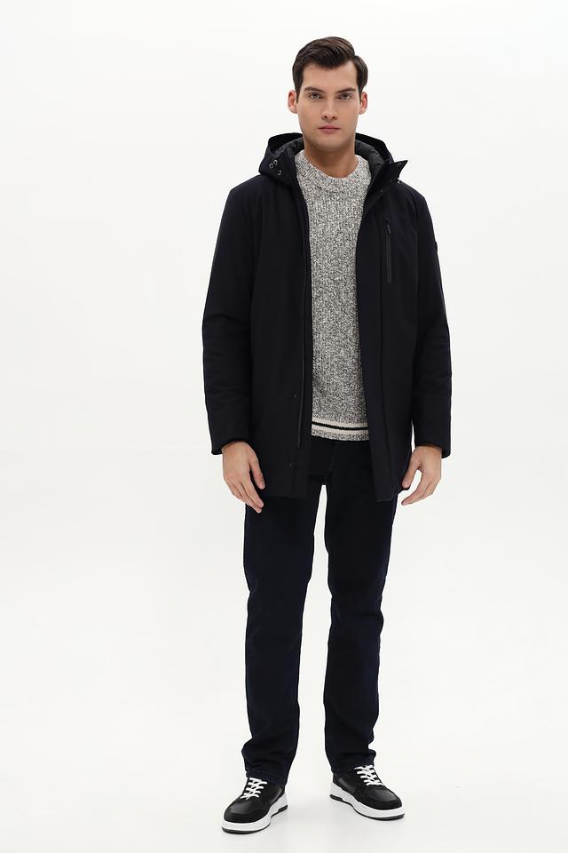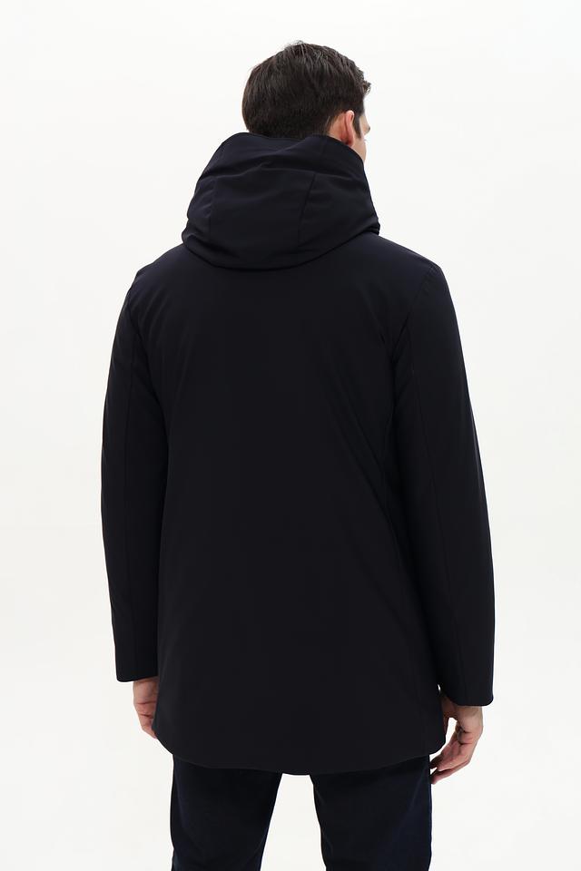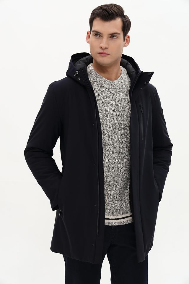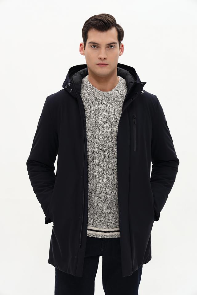 Куртка имеет тёмно-синий цвет, который легко сочетается с различными элементами гардероба. Модель оснащена удобным капюшоном, который защитит от непогоды, а также практичными карманами для хранения необходимых вещей.