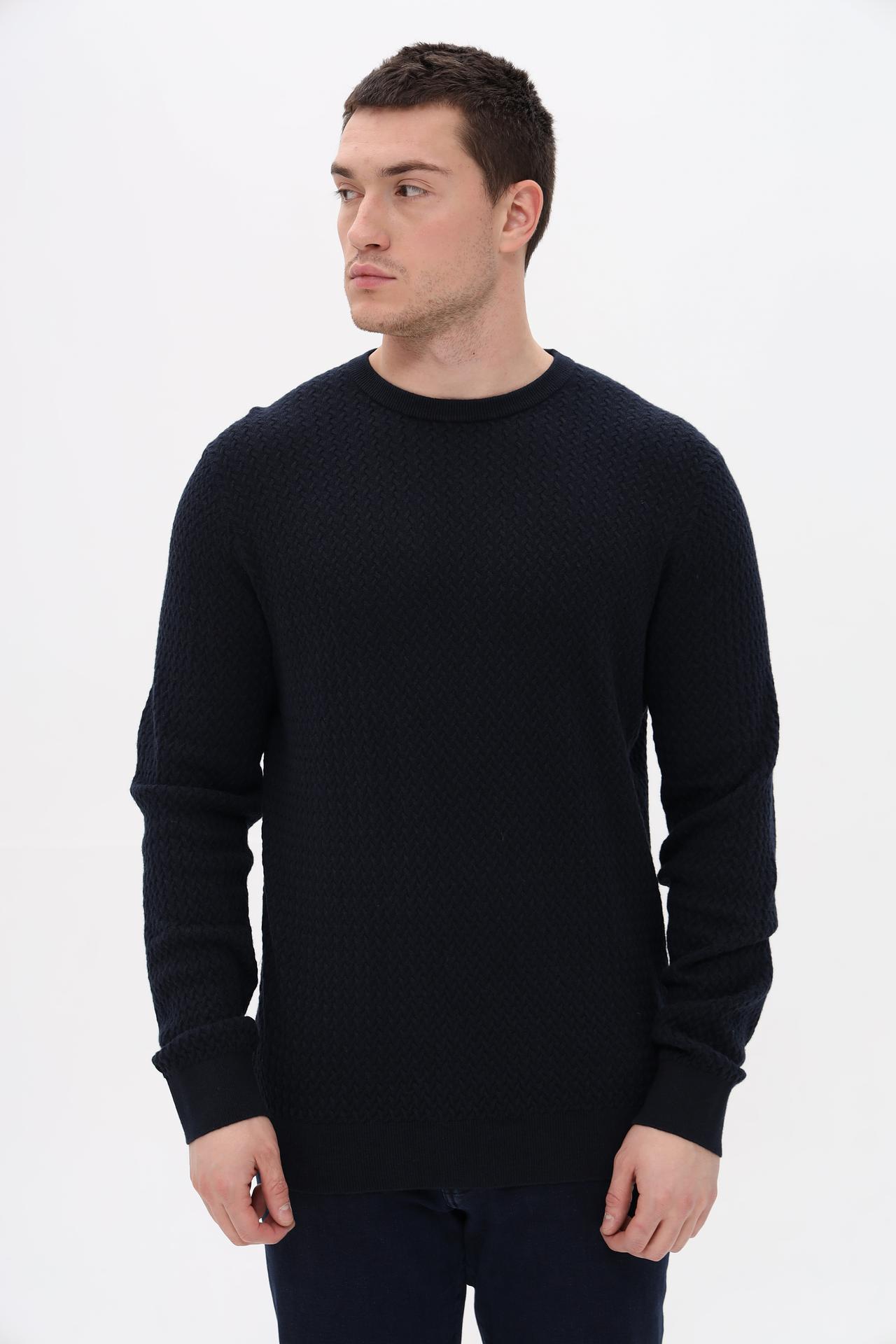 Джемпер Bugatti мужской синий с фактурной вязкой