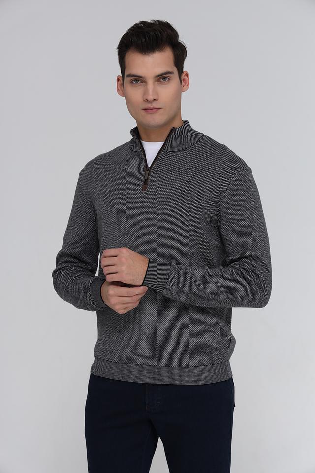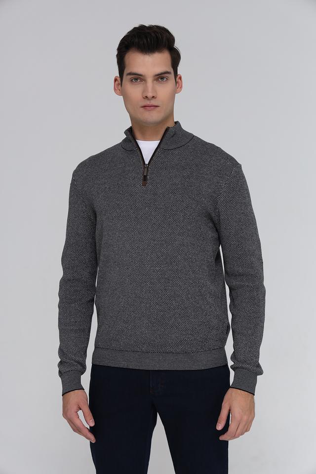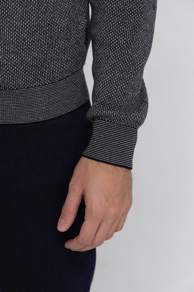 Джемпер имеет классический крой и воротник с короткой молнией, что добавляет ему современный вид. Текстурированный узор придает изделию особый шарм. Ребристые манжеты и нижний край обеспечивают плотное прилегание.