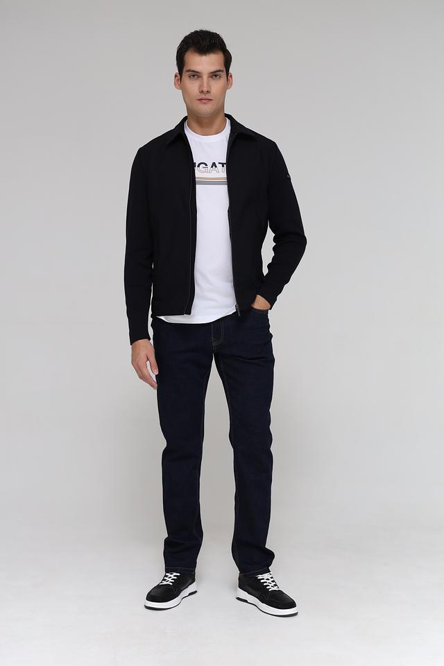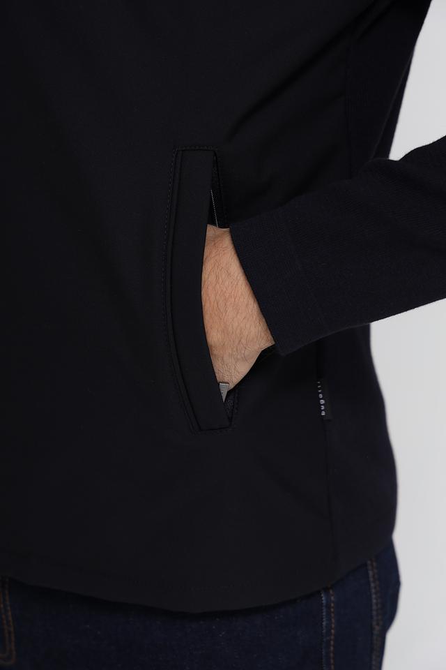 Мужской кардиган от Bugatti выполнен в классическом чёрном цвете. Модель имеет застёжку на молнии и воротник-стойку, что придает ей более строгий и элегантный вид.