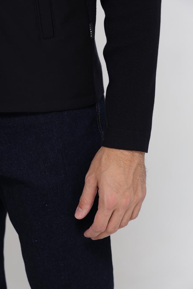На левом рукаве кардигана расположен небольшой логотип бренда Bugatti, который подчеркивает его принадлежность к премиальному сегменту.