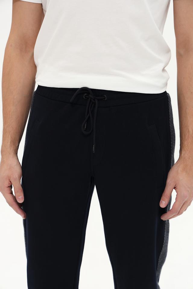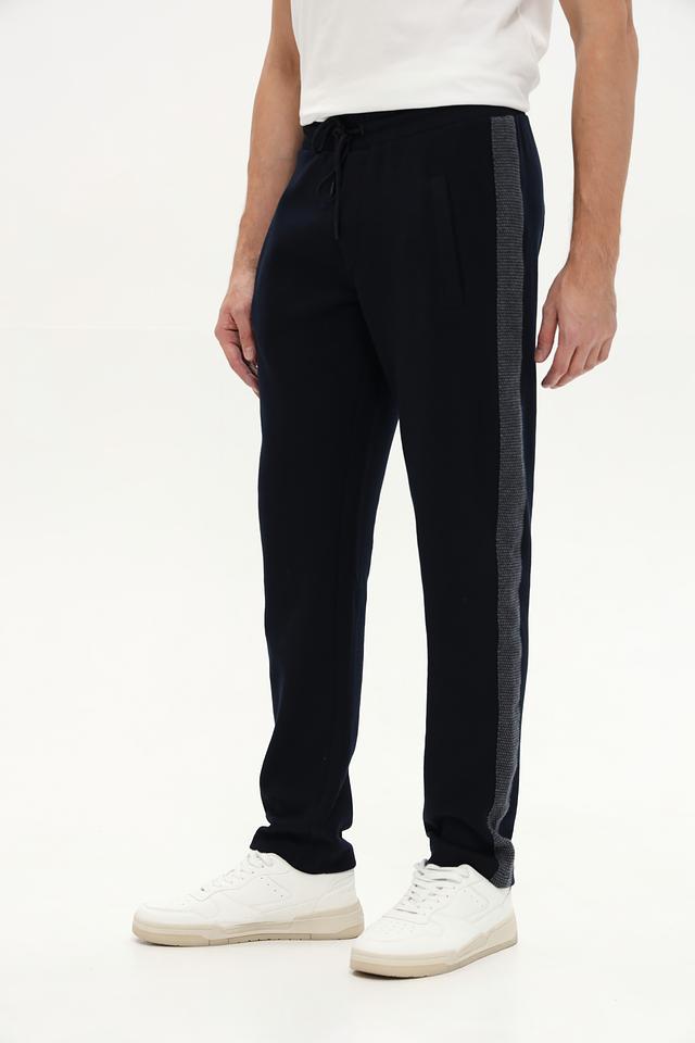 Мужские спортивные брюки Bugatti темно-синего цвета с боковыми полосами. Модель выполнена из хлопка с добавлением полиэстера для комфорта и износостойкости. Идеальный выбор для активного образа жизни. Состав: хлопок 67%, полиэстер 33%