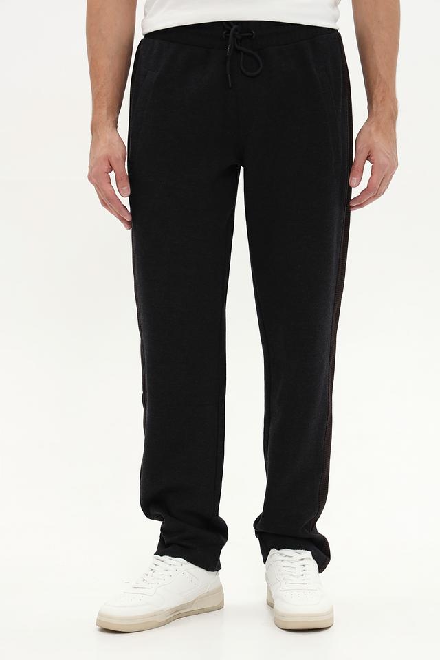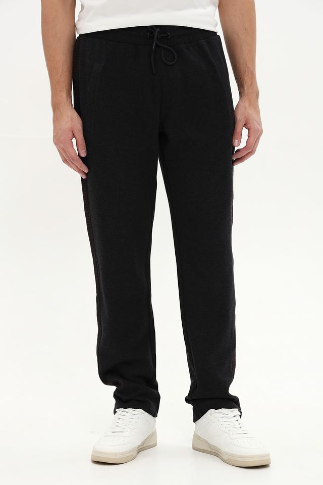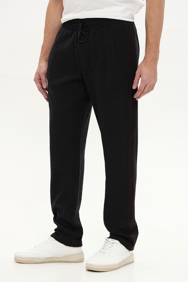 Брюки имеют прямой крой, обеспечивающий свободу движений. Эластичный пояс с регулируемым шнурком гарантирует идеальную посадку по фигуре. По бокам брюк расположены декоративные полосы, добавляющие динамичности образу.