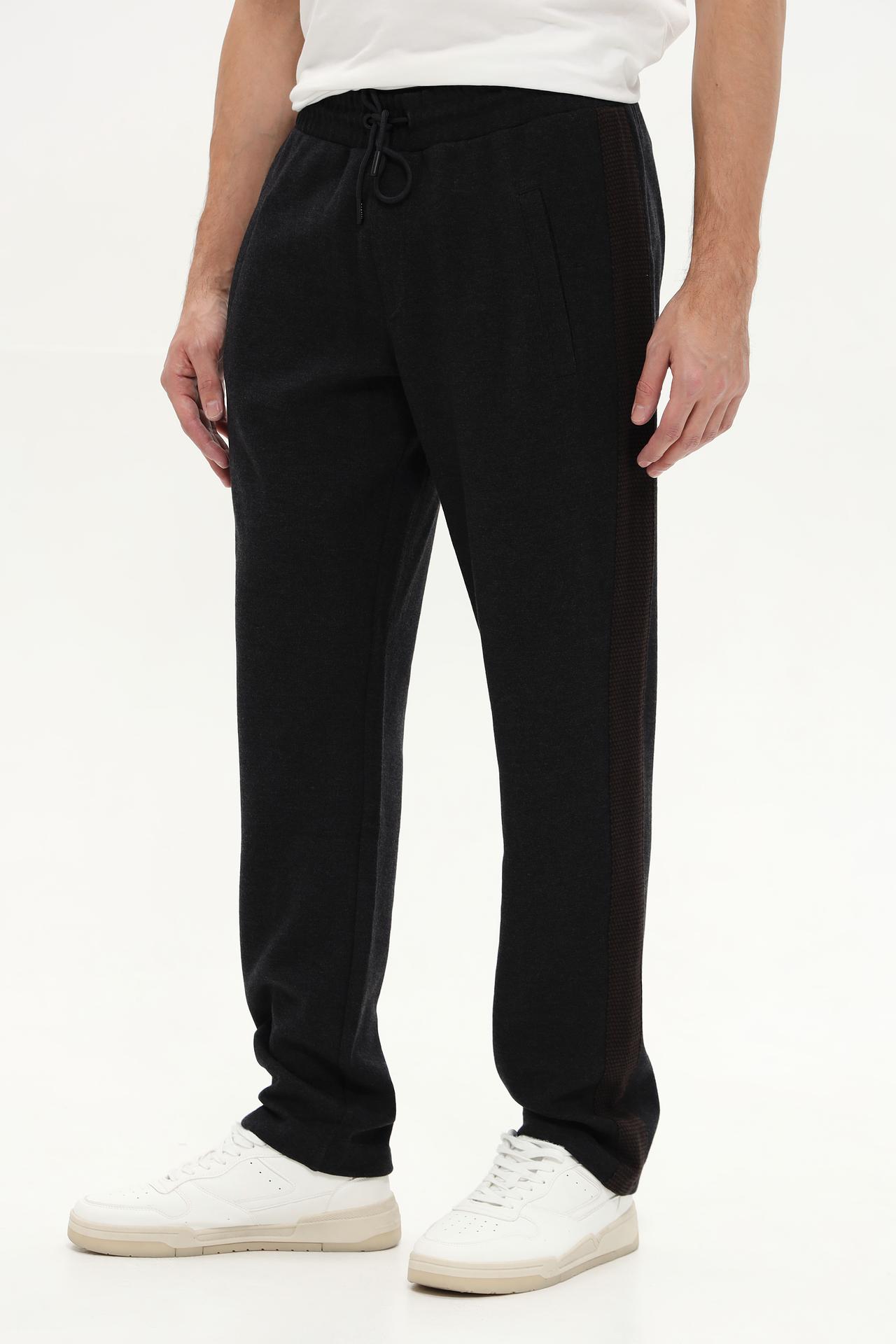 - Дизайн: Брюки отличаются лаконичным дизайном с акцентом на боковые вставки, выполненные в контрастной фактуре. Это добавляет изделию современности и стиля.