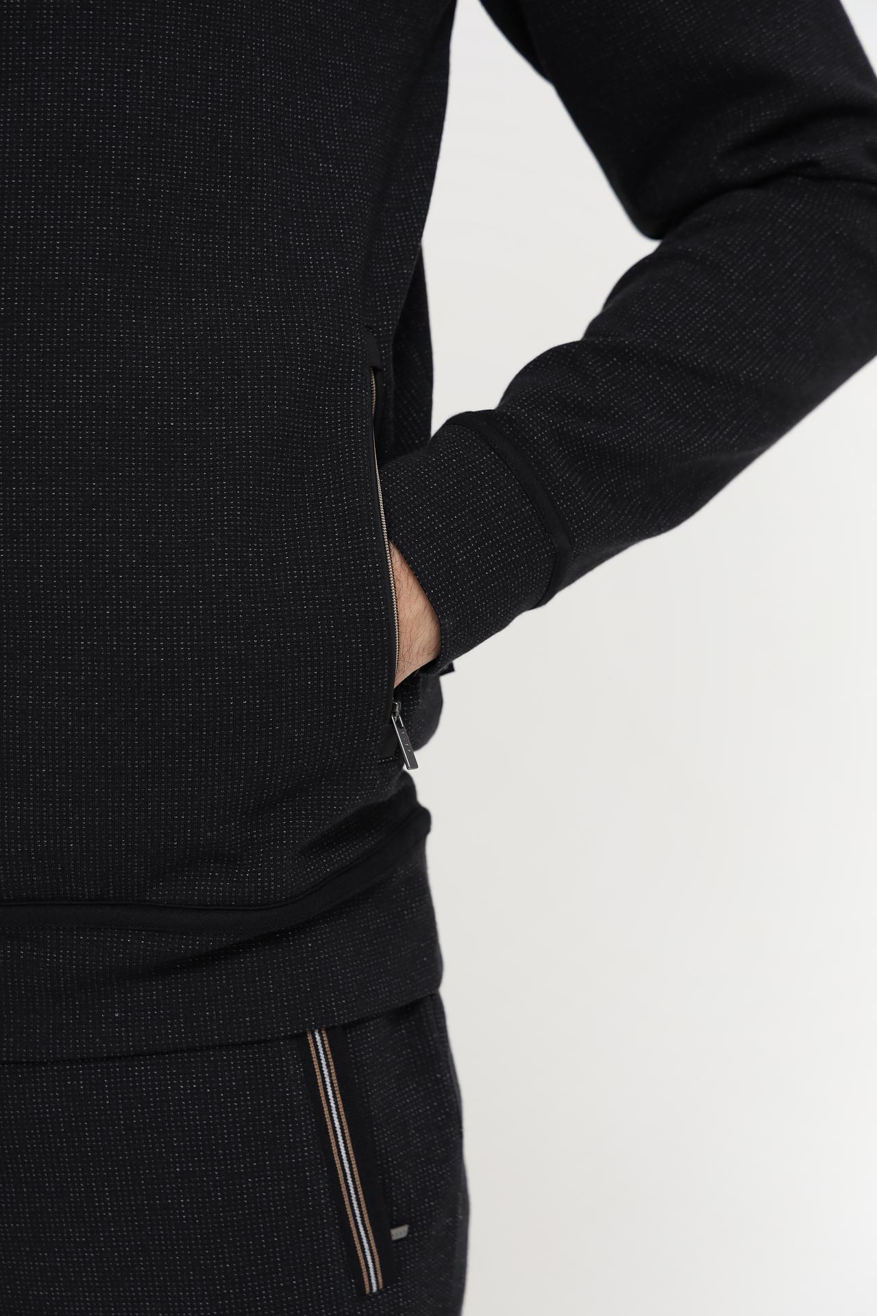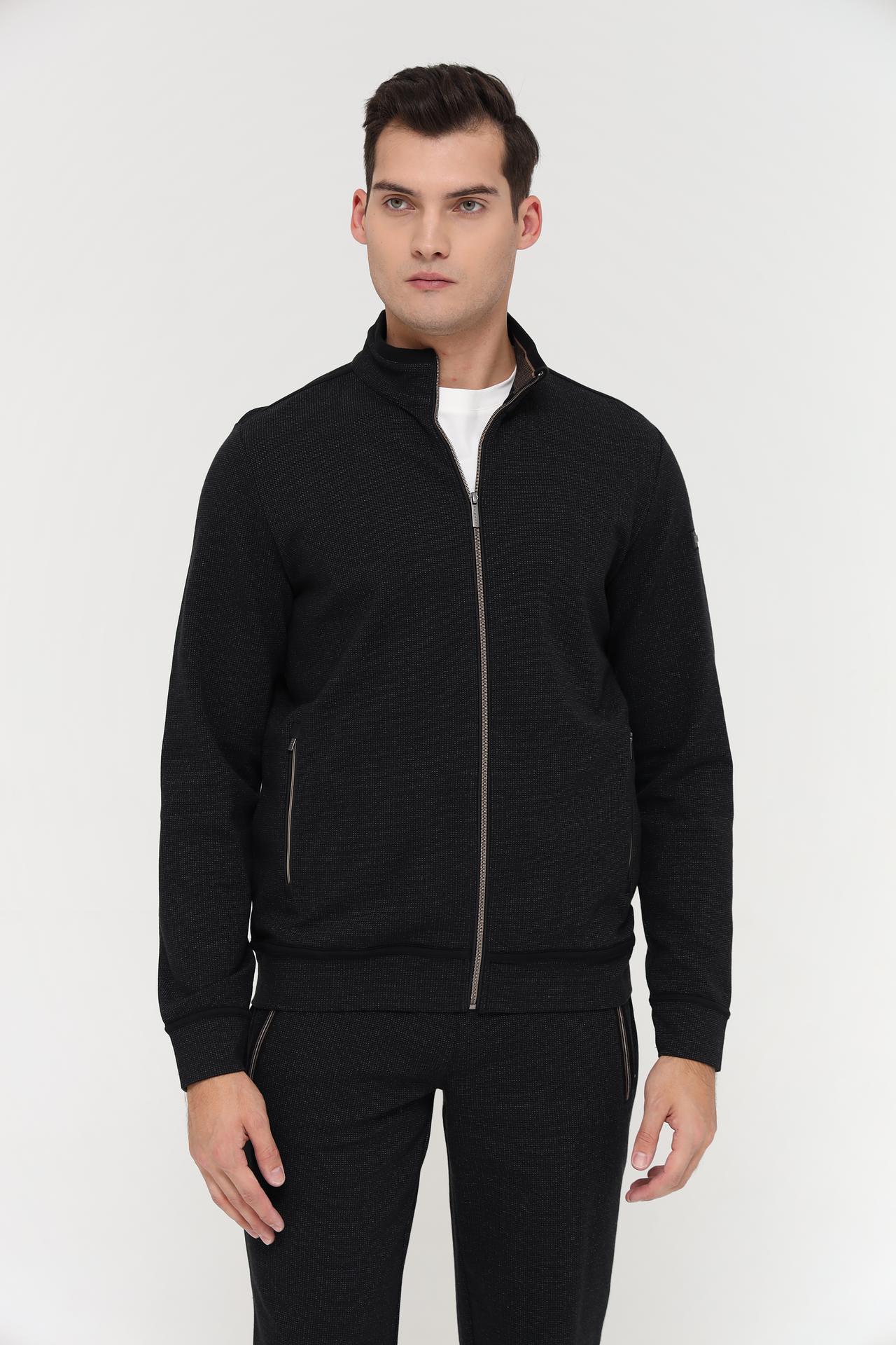 Кардиган выполнен в классическом чёрном цвете и имеет минималистичный дизайн, что делает его универсальным элементом для создания разнообразных образов. Воротник-стойка и застёжка-молния добавляют функциональности и современного вида. Боковые карманы на молнии практичны и удобны.