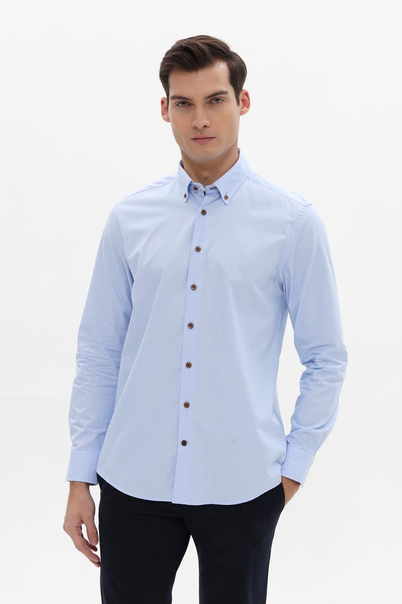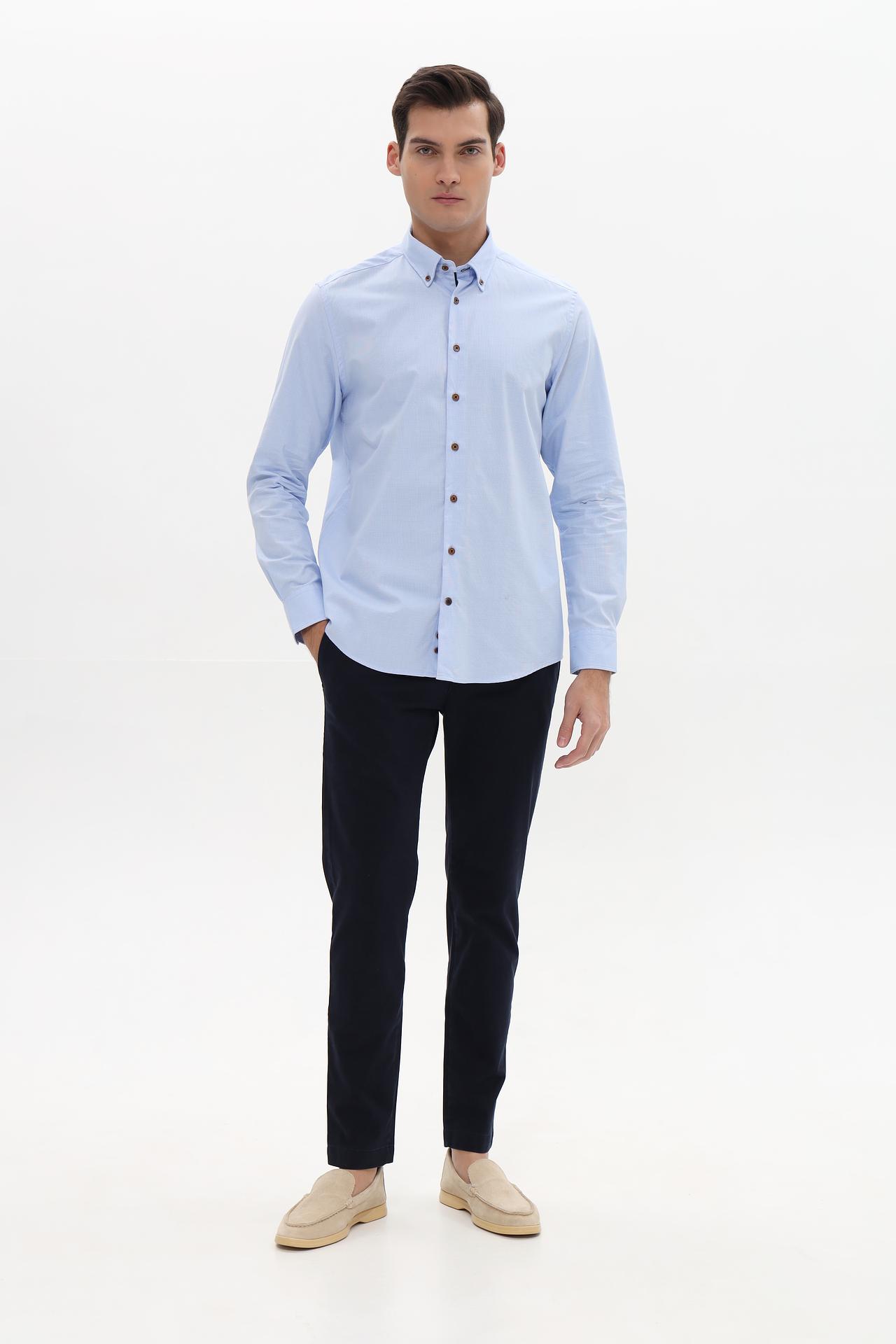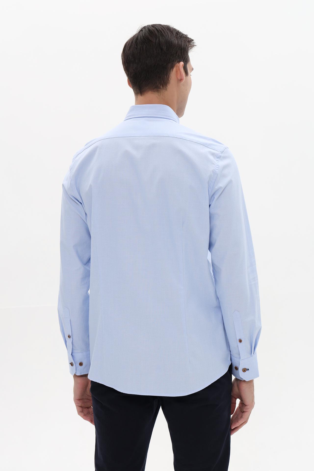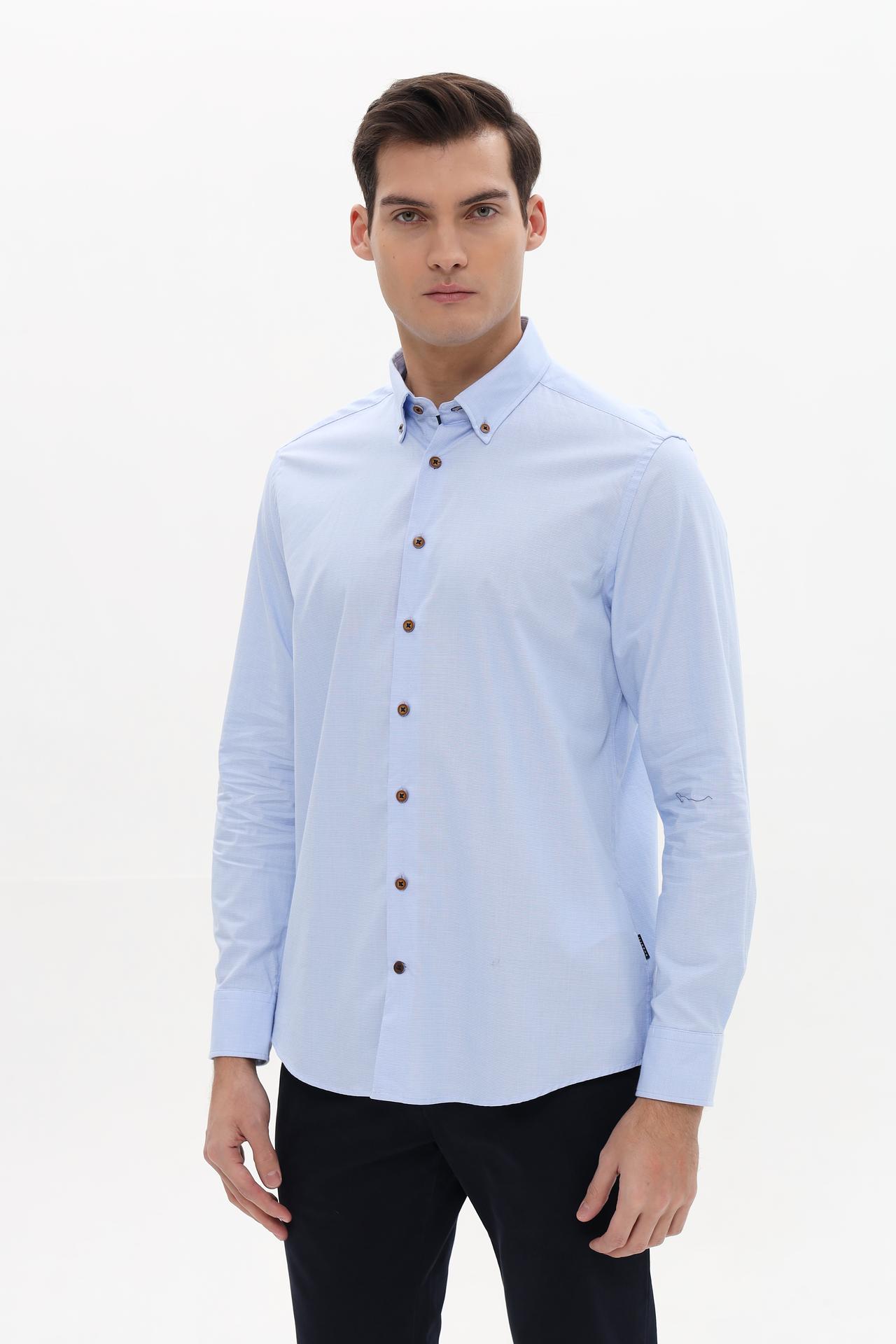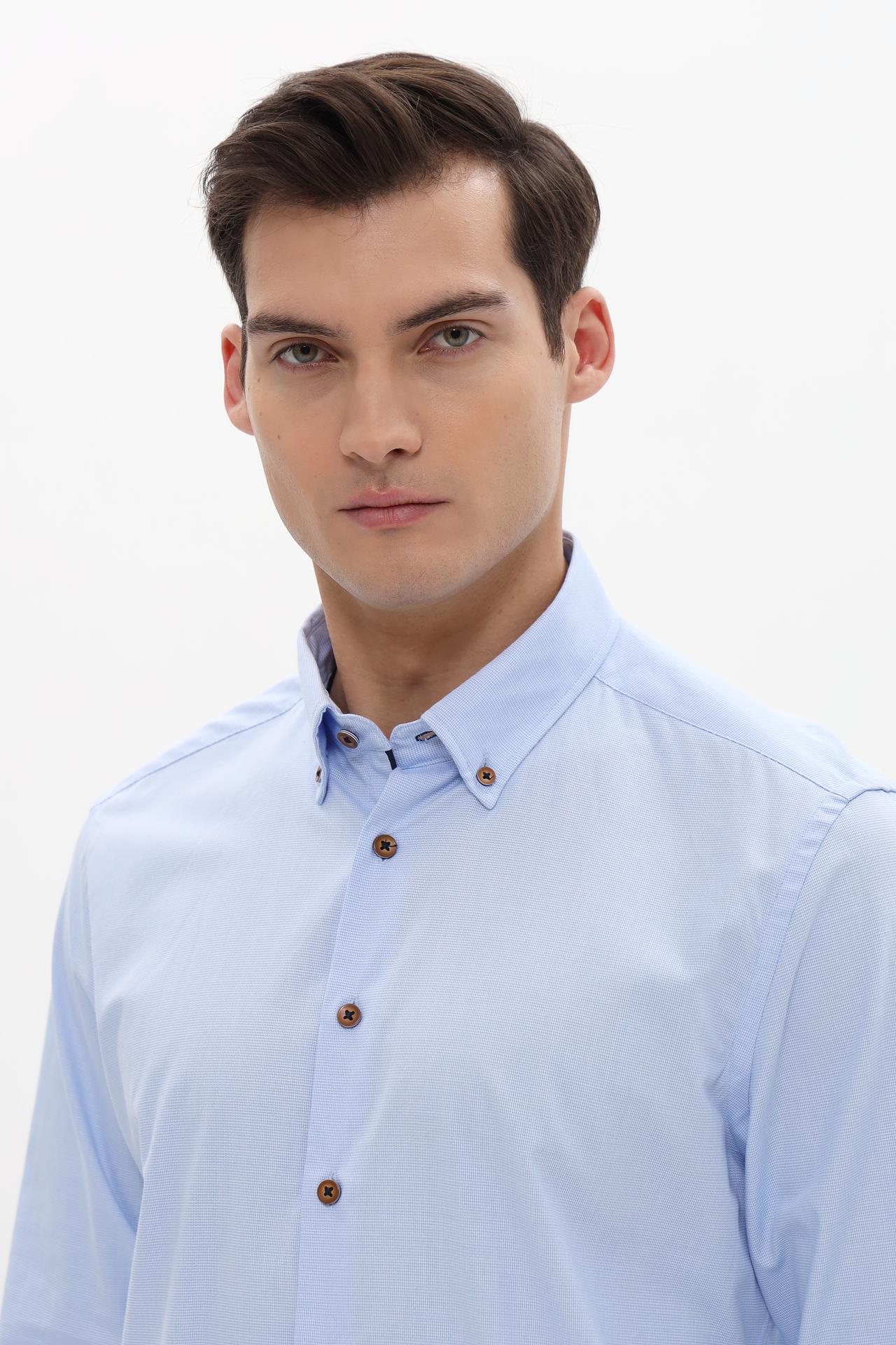 Рубашка прекрасно сочетается с брюками чинос или классическими брюками, создавая стильный и завершенный образ. Почувствуйте уверенность и комфорт в каждой детали вашего гардероба.