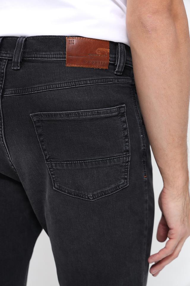 Застежка на молнию и пуговицу. Пять карманов – два передних, два задних и один небольшой карман для мелочи. На заднем поясе расположен небольшой логотип бренда Bugatti.