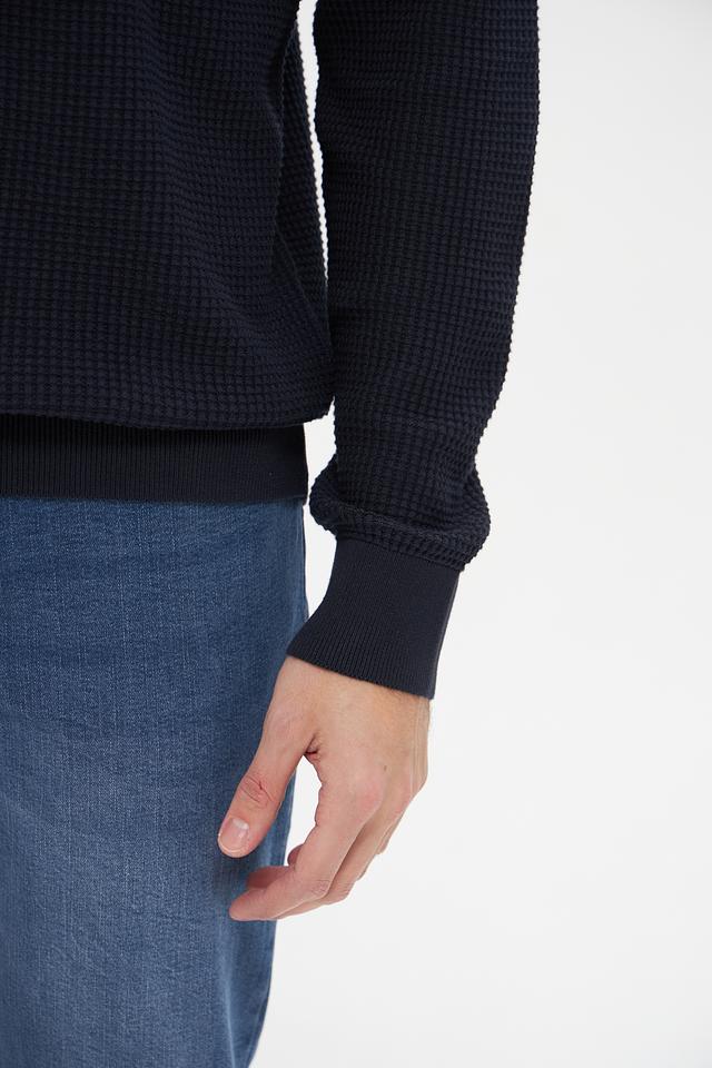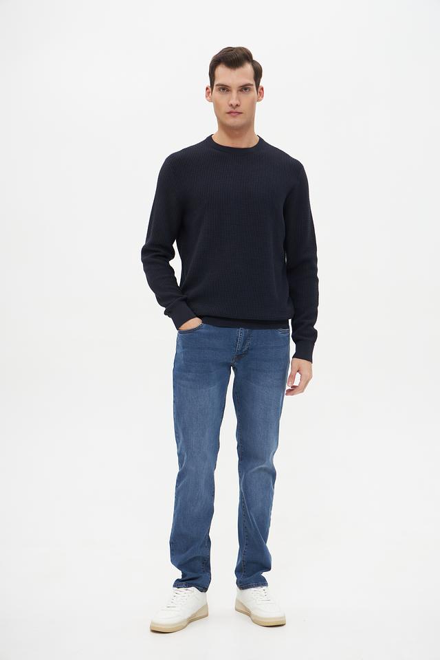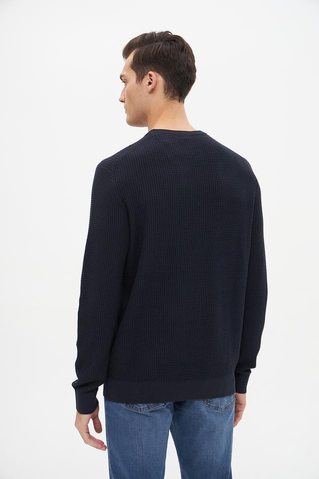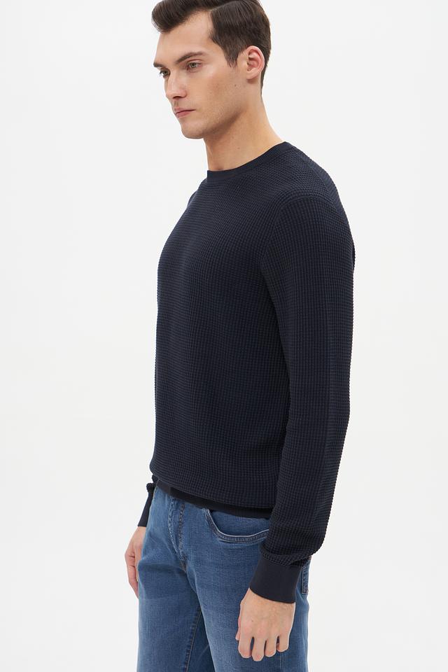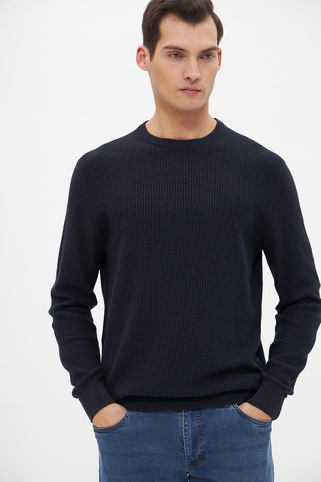 Мужской джемпер Bugatti тёмно-синего цвета выполнен из 100% хлопка и имеет текстурную вязку. Классический крой и круглый вырез горловины делают этот джемпер универсальным элементом гардероба. Состав: хлопок 100%