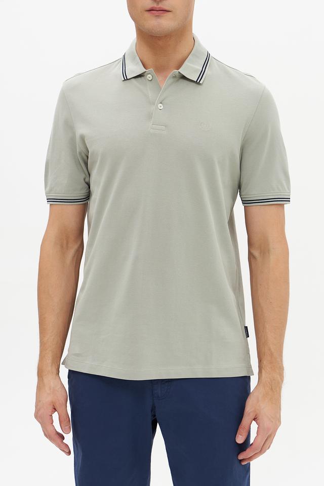 Мужское поло Bugatti серого цвета с контрастной полоской на воротнике и рукавах. Изготовлено из 100% хлопка, обеспечивающего комфорт и воздухопроницаемость. Состав: хлопок 100%