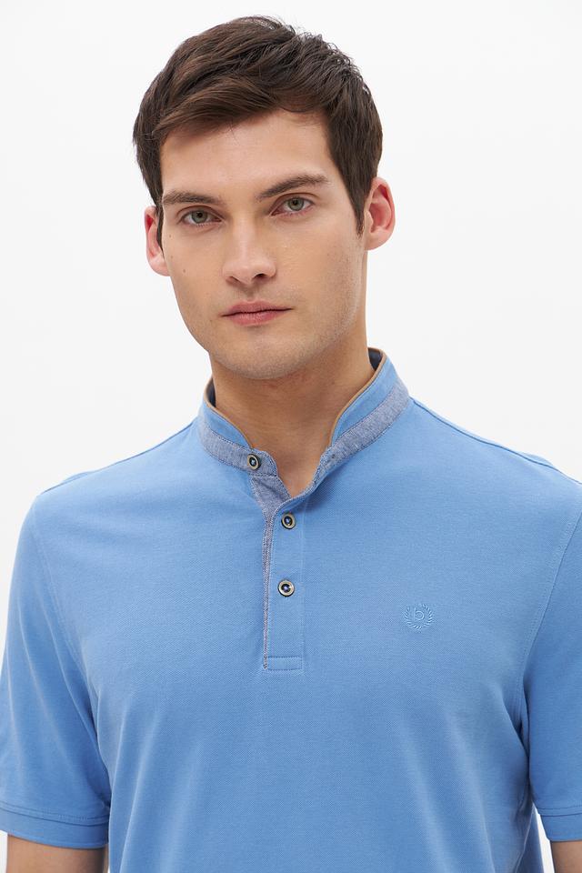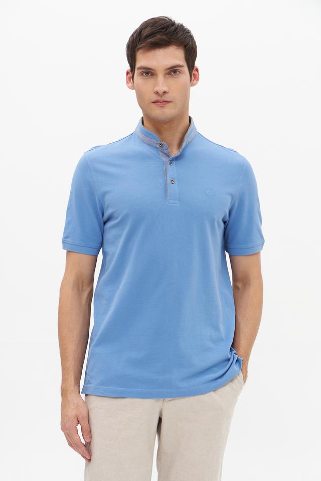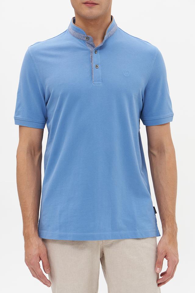 Мужское поло Bugatti голубого цвета выполнено из 100% хлопка, имеет воротник с планкой на пуговицах и короткий рукав. Стильный и комфортный выбор для повседневной носки. Состав: хлопок 100%