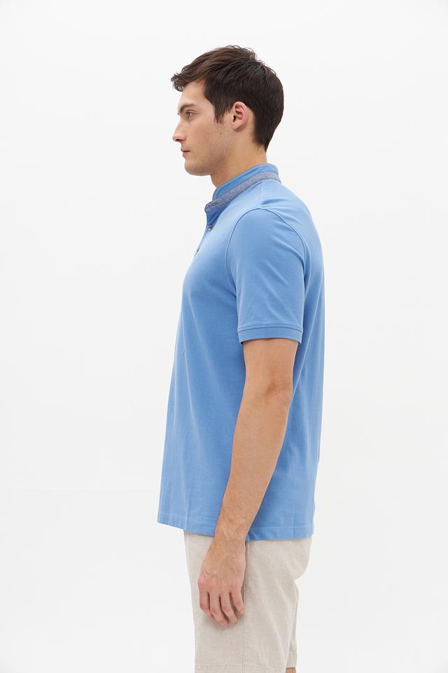 Поло имеет классический крой, короткий рукав и воротник с планкой на пуговицах. Отличительной особенностью является воротник с контрастной отделкой, придающей изделию особый шарм.