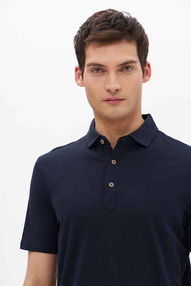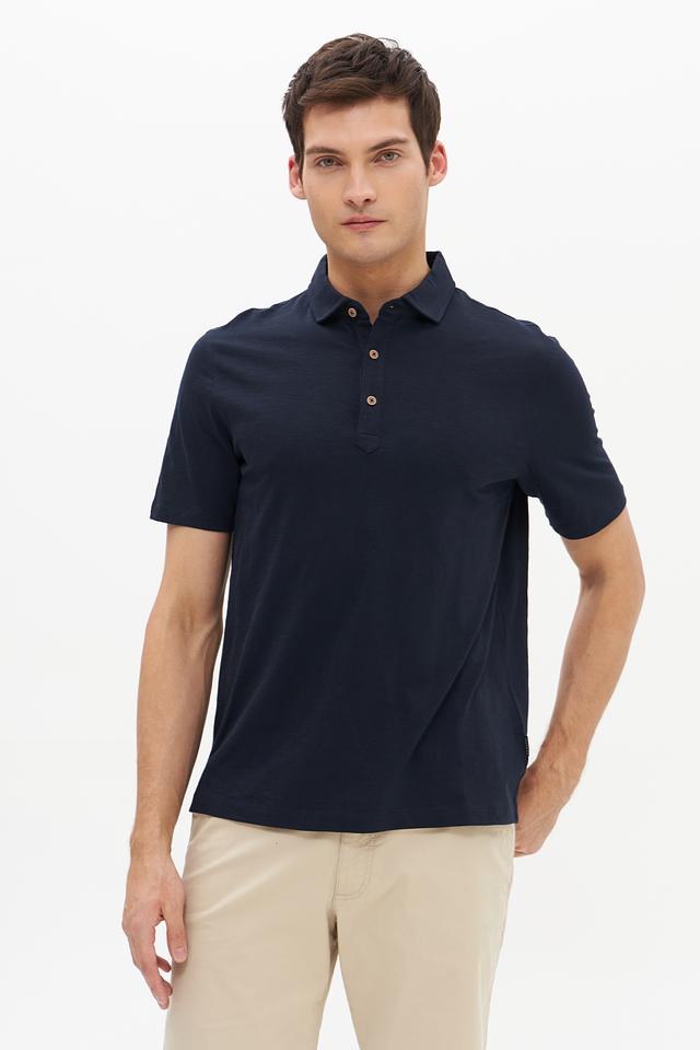Классический крой поло идеально подходит для создания различных образов – от повседневных до более формальных. Темно-синий цвет делает эту модель универсальной и легко сочетаемой с другими элементами гардероба.