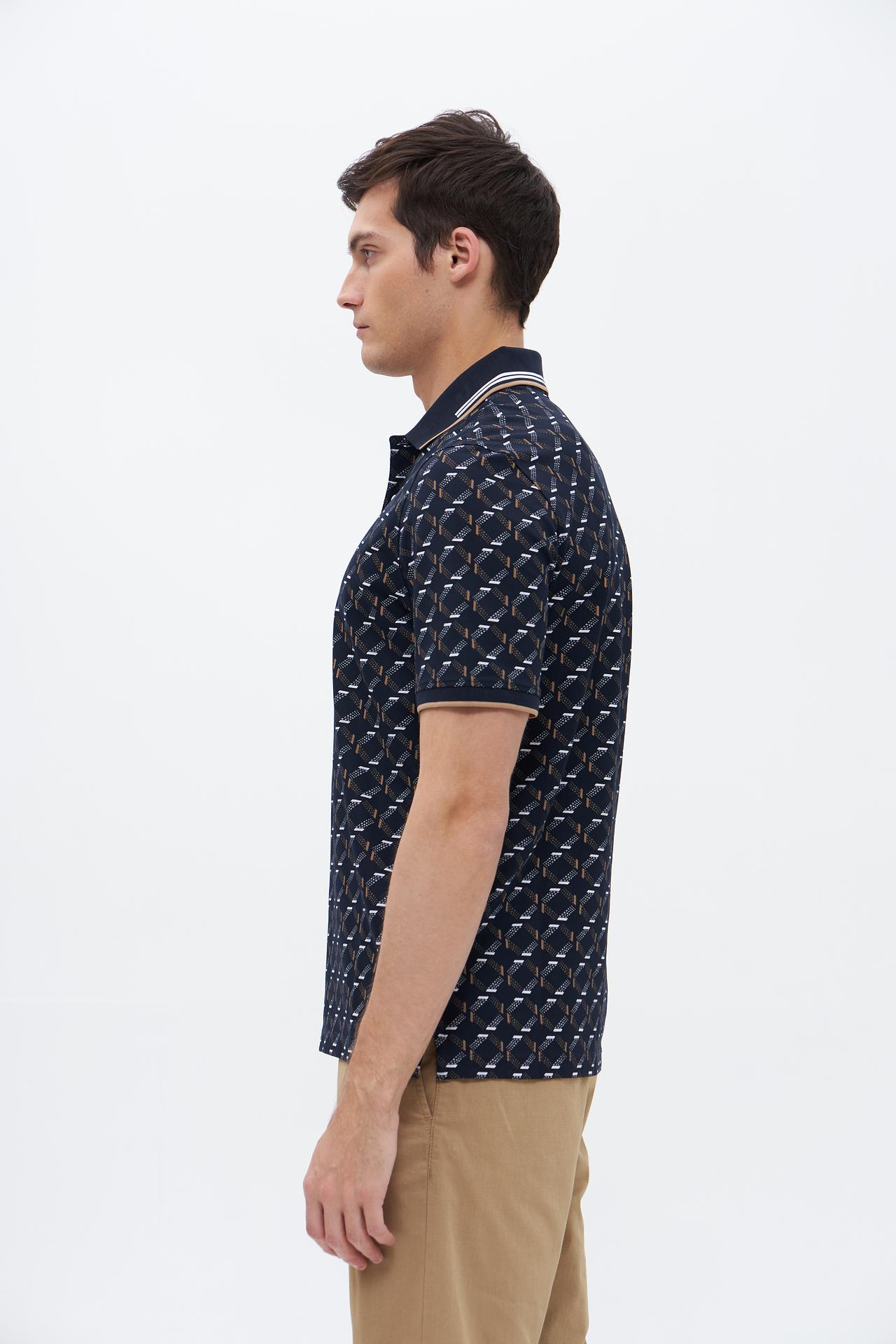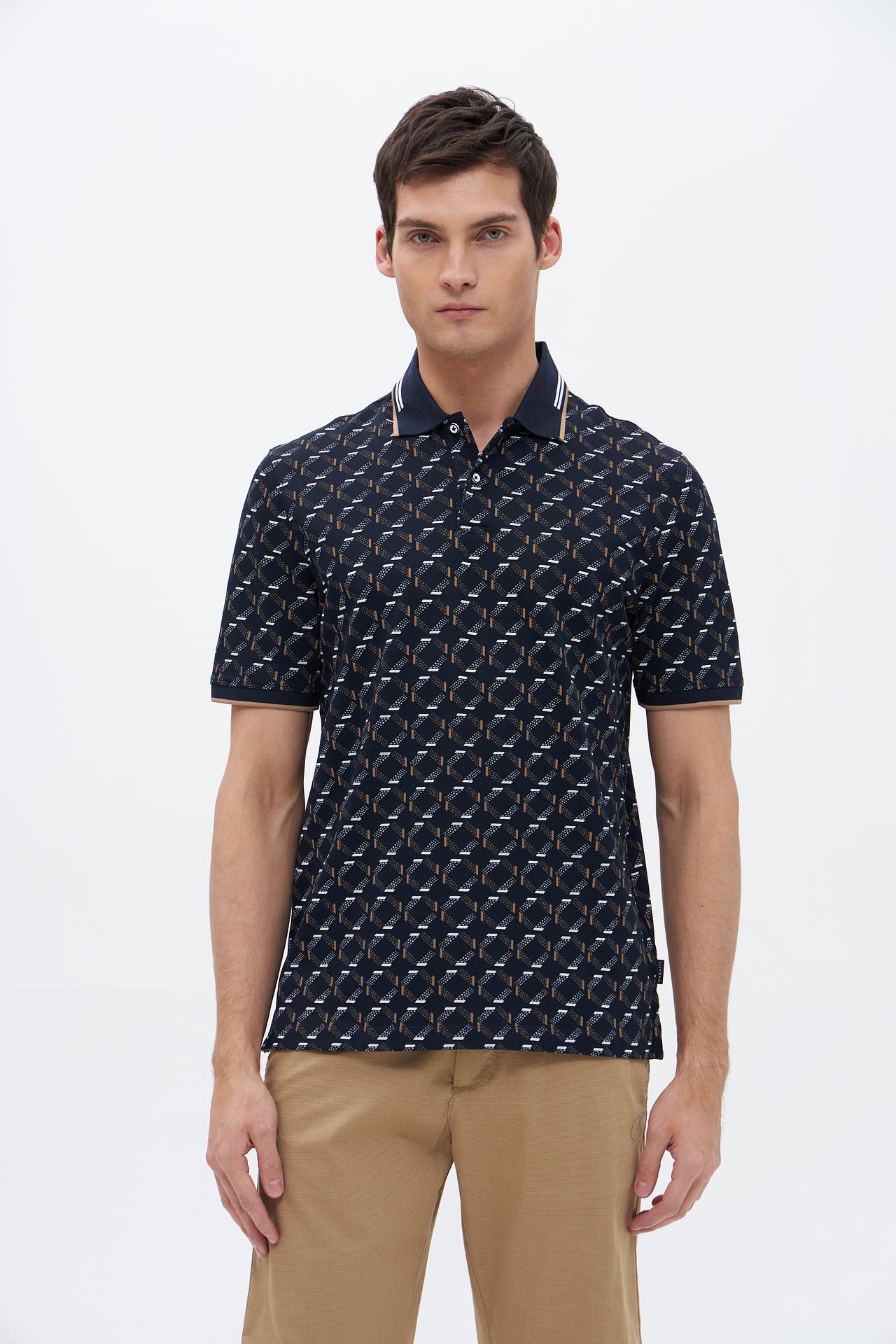Поло Bugatti тёмно-синее с принтом и отделкой